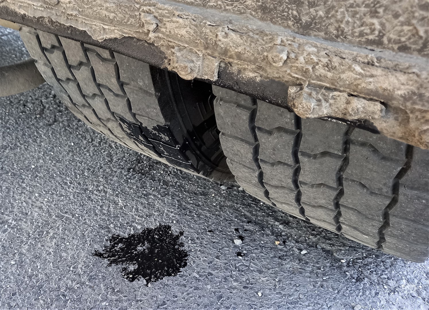 Wycieki płynów eksploatacyjnych wykryto podczas kontroli ciężarówki. Niesprawny technicznie pojazd został wycofany z ruchu przez patrol wielkopolskiej Inspekcji Transportu Drogowego.