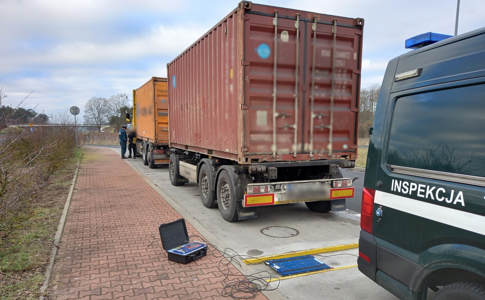 Za ciężki o ponad sześć ton zespół pojazdów z dwoma kontenerami morskimi zatrzymali do kontroli na ekspresowej „5” wielkopolscy inspektorzy.