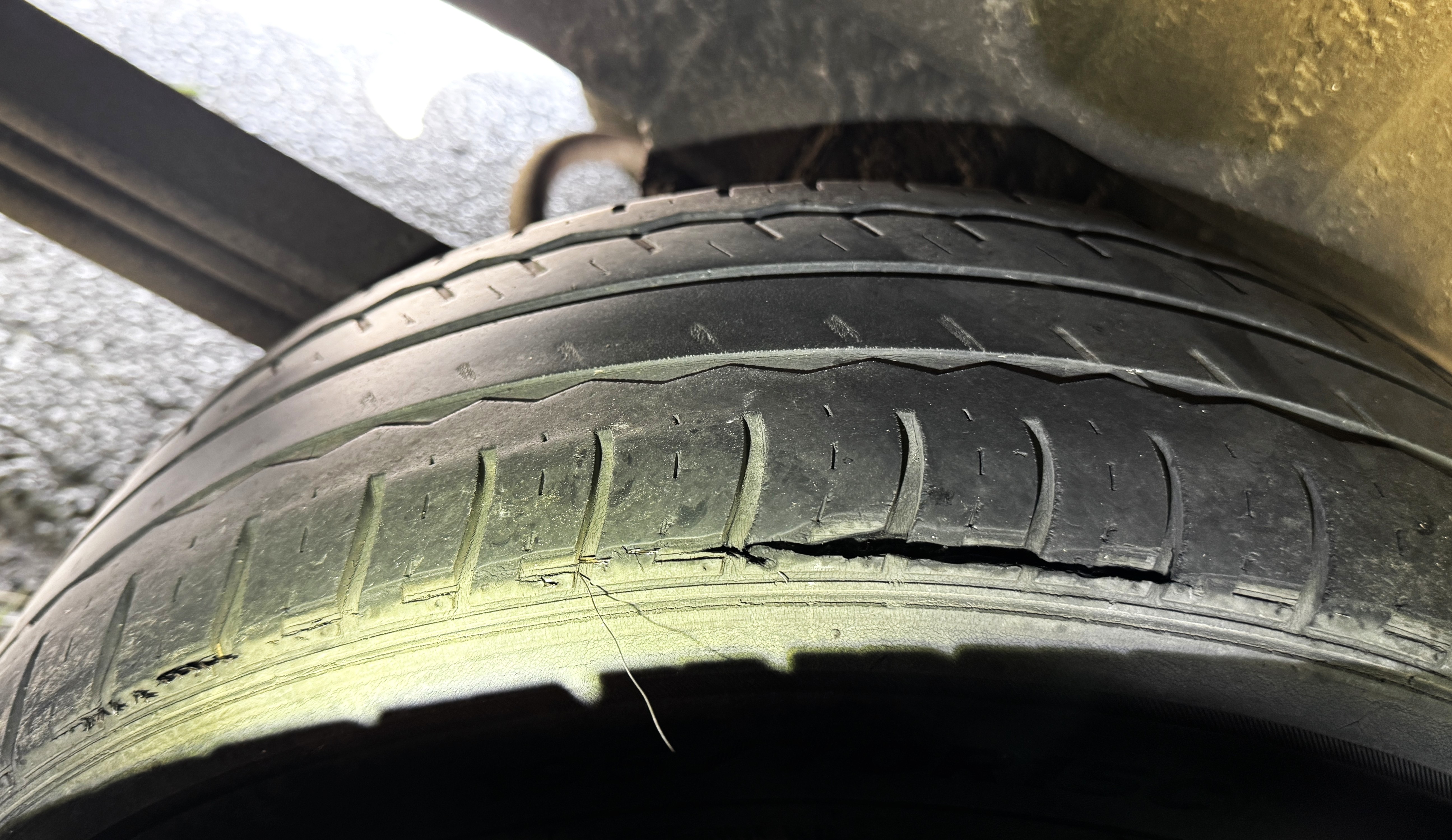 W trakcie kontroli stanu technicznego wykryto usterki zagrażające bezpieczeństwu ruchu drogowego. Na prawym kole drugiej osi znajdowała się opona z nadmiernie zużytym bieżnikiem. Ubytki w bieżniku odsłaniały stalowy kord opony w co najmniej dwóch miejscach. Użytkowanie opony w takim stanie groziło jej wystrzałem podczas jazdy. Oprócz tego z silnika znacznie wyciekał olej. Funkcjonariusze stwierdzili także uchybienia formalne. Kierowca nie miał przy sobie wymaganego wypisu z zezwolenia na wykonywanie realizowanego rodzaju przewozu osób.