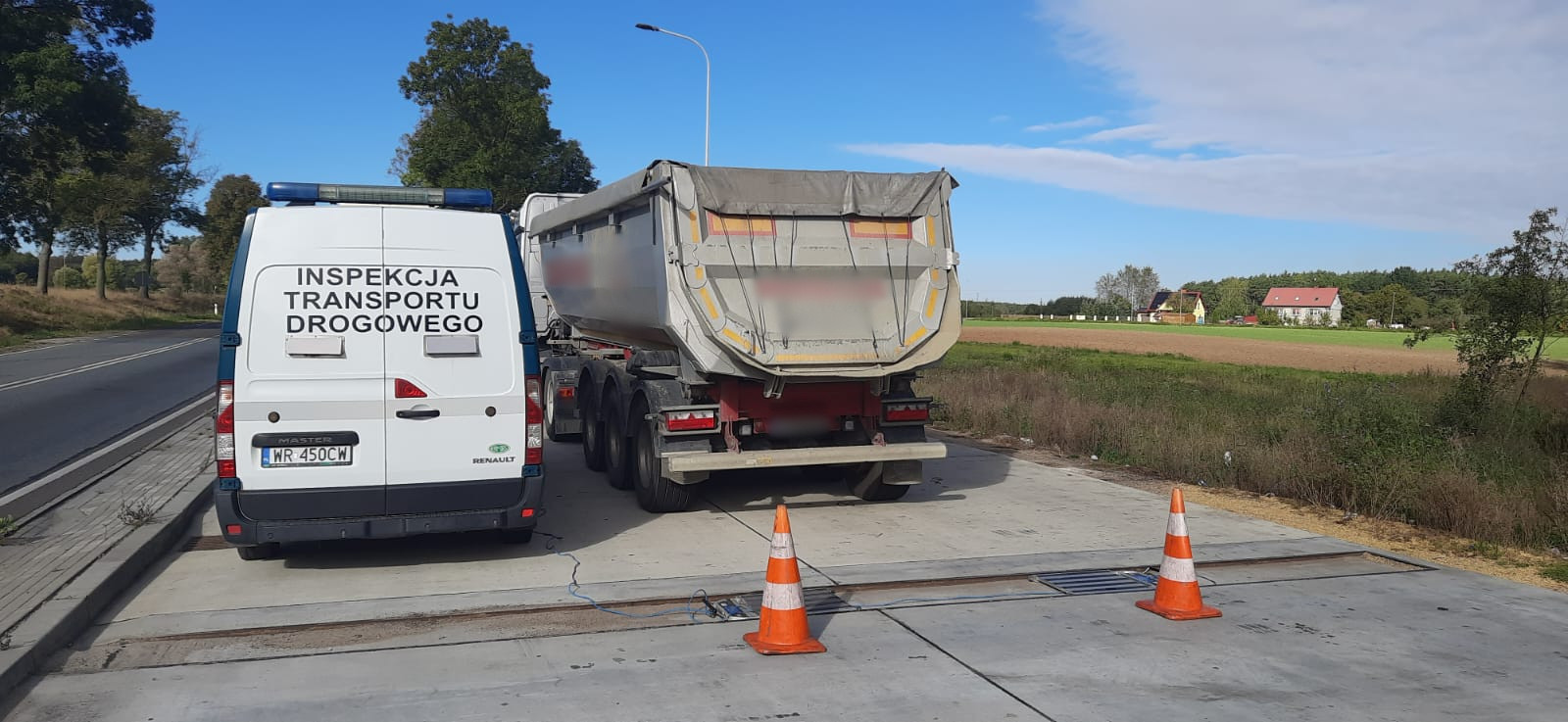 Ciężarówkę skierowano na inspekcyjne wagi. Zestaw wraz z ładunkiem ważył 53,5 t zamiast dopuszczalnych 40 t. Za duża masa przewożonego ładunku spowodowała też przekroczenie o 0,9 t dozwolonego nacisku pojedynczej osi napędowej ciągnika siodłowego na drogę. Nacisk ten wynosił 12,4 t przy obwiązującej normie 11,5 t. Z kolei suma nacisków trzech osi naczepy wynosiła 33,9 t zamiast przepisowych 24 t.
