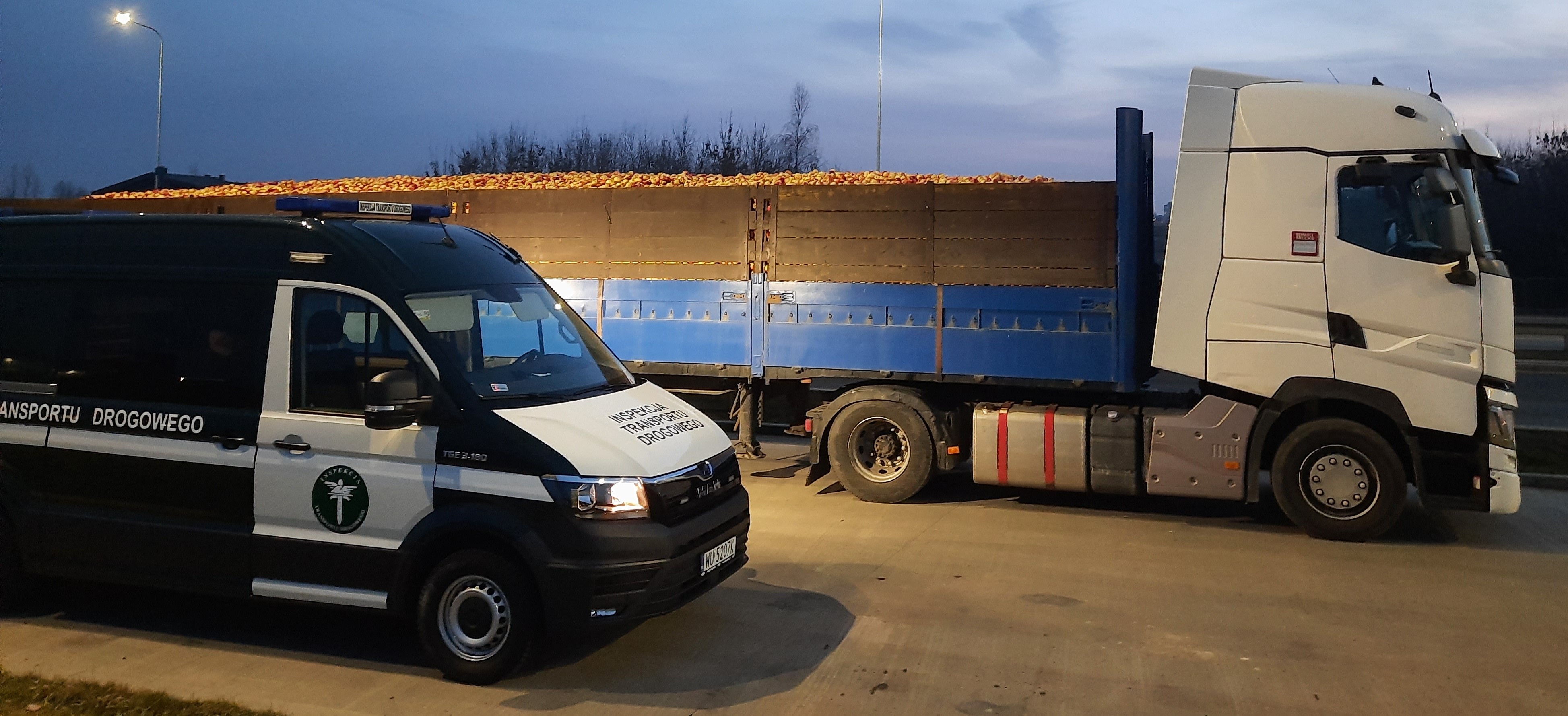 Niemal 47 ton zamiast przepisowych 40 ważyła ciężarówka przewożąca jabłka luzem. Owoców było tak dużo, że wystawały poza podwyższone burty naczepy. Za duża masa ładunku spowodowała też przekroczenia dopuszczalnych nacisków osi zestawu na drogę. Nieprawidłowy przewóz wstrzymali funkcjonariusze mazowieckiej Inspekcji Transportu Drogowego.