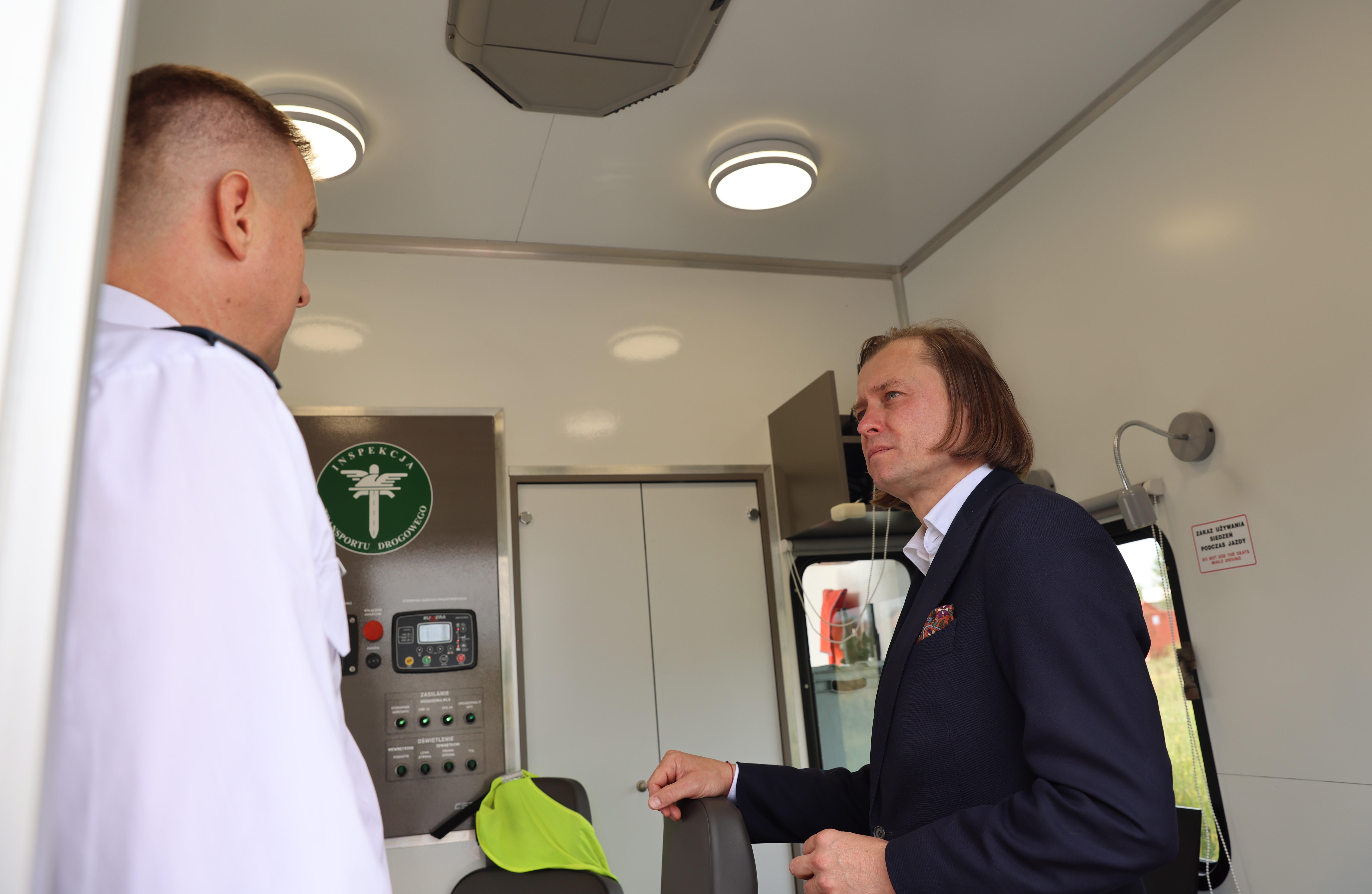 Goście byli również w punkcie kontrolnym przy ul. NSZZ Solidarność w Radomiu. Szef ITD Artur Czapiewski i Wojewoda Mazowiecki Mariusz Frankowski przyjrzeli się pracy inspektorów. Tam prowadzono szczegółowe kontrole stanu technicznego pojazdów z użyciem Mobilnej Jednostki Diagnostycznej, która jest specjalistycznym urządzeniem pracującym w oparciu o elementy uniwersalnej linii diagnostycznej. Jest wyposażona w hydraulicznie rozkładane najazdy przewożone w zabudowanym samochodzie ciężarowym. Zakres kontroli pojazdów ciężarowych i autobusów z wykorzystaniem MJD jest niemal identyczny jak podczas badania wykonywanego w Okręgowej Stacji Kontroli Pojazdów.
