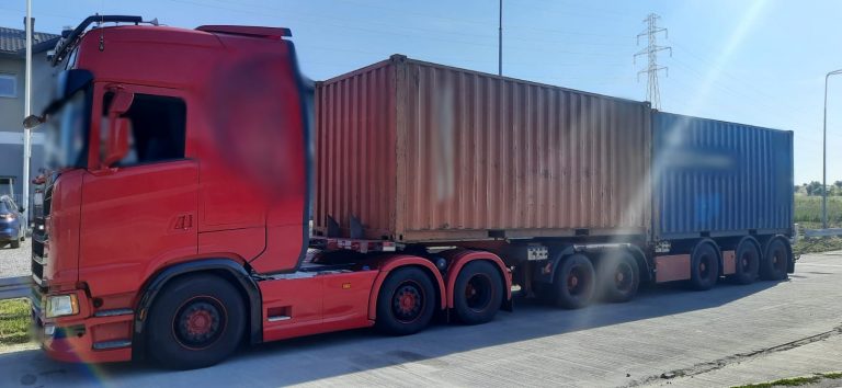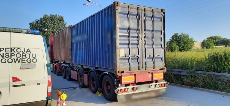 W środę (20 lipca) rano, na wojewódzkiej 735-ce w Młodocinie Mniejszym, patrol ITD zatrzymał do kontroli 8-osiowy zestaw składający się z ciągnika siodłowego i dwóch naczep. Ciężarówką należącą do polskiego przedsiębiorcy przewożono dwa załadowane kontenery z Gdańska do Radomia. W tym przypadku powodem podjęcia interwencji było podejrzenie przekroczenia dozwolonego tonażu. Jak się okazało tzw. „stonoga” z ładunkiem ważyła 65,6 t zamiast dopuszczalnych 40 t. Kierujący nie miał wymaganego zezwolenia kategorii V na przejazd pojazdu nienormatywnego po drogach publicznych. Oprócz tego ciężarówka o masie przekraczającej 60 t powinna poruszać się z pojazdem pilotującym, którego nie było.