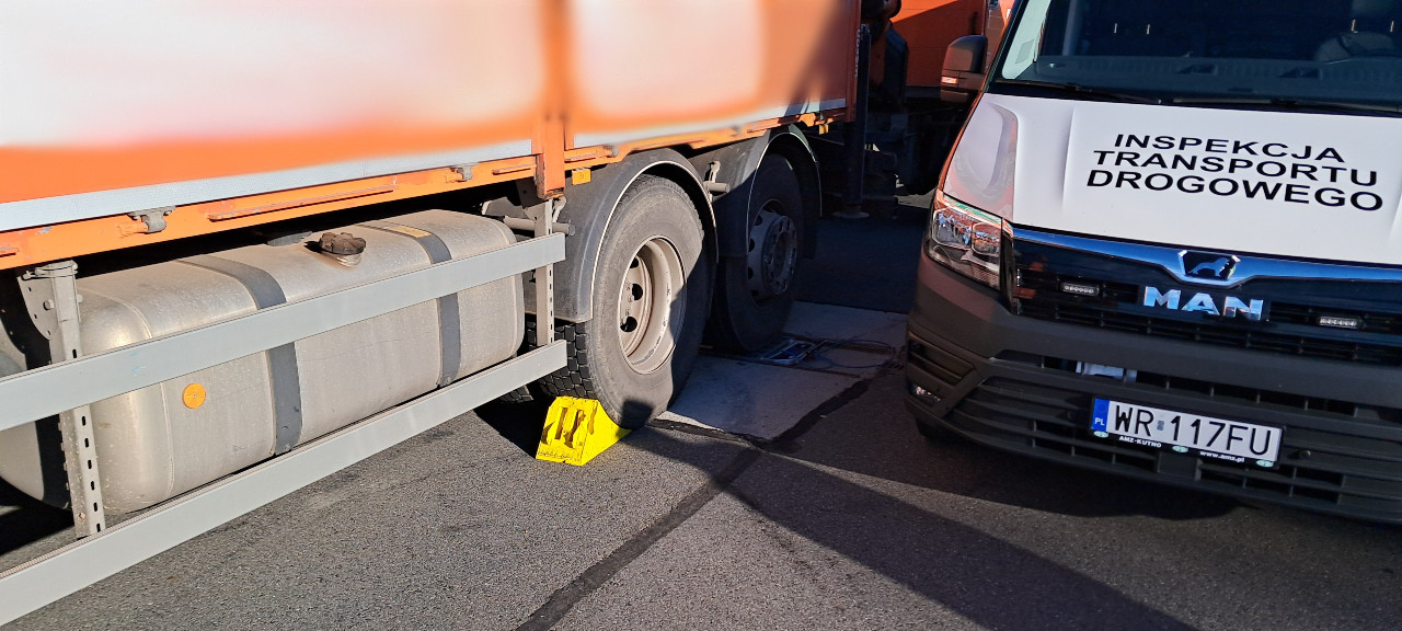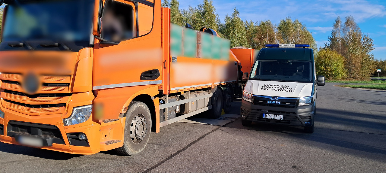 W tym przypadku inspektorzy także postanowili zweryfikowali tonaż ciężarówki z przyczepą. Skierowali ją na inspekcyjne wagi. Zespół pojazdów z ładunkiem ważył 43,1 t zamiast dopuszczalnych 40 t. Oprócz tego był on za długi o 18 centymetrów. Długość samochodu ciężarowego z przyczepą wynosiła 18,93 m przy normie 18,75 m.