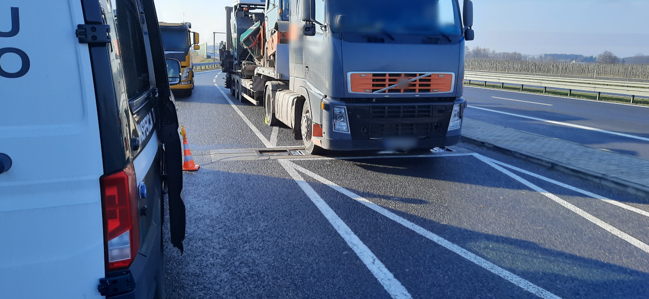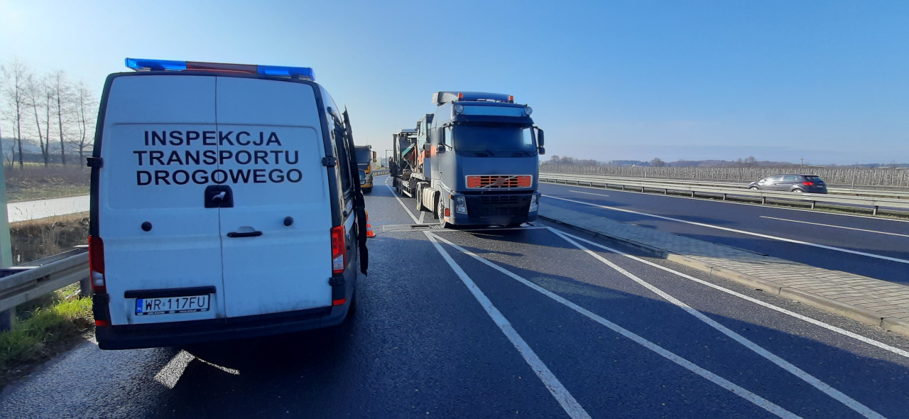 We wtorek (19 marca), na odcinku ekspresowej „siódemki” w pobliżu Grójca, patrol ITD zatrzymał ciągnik siodłowy z naczepą - platformą niespodwoziową. Zestawem należącym do polskiego przedsiębiorcy przewożono walec drogowy i rozściełacz do asfaltu z Radomia do miejscowości Petrykozy. Powodem podjęcia interwencji było podejrzenie przekroczenia przepisowego tonażu.