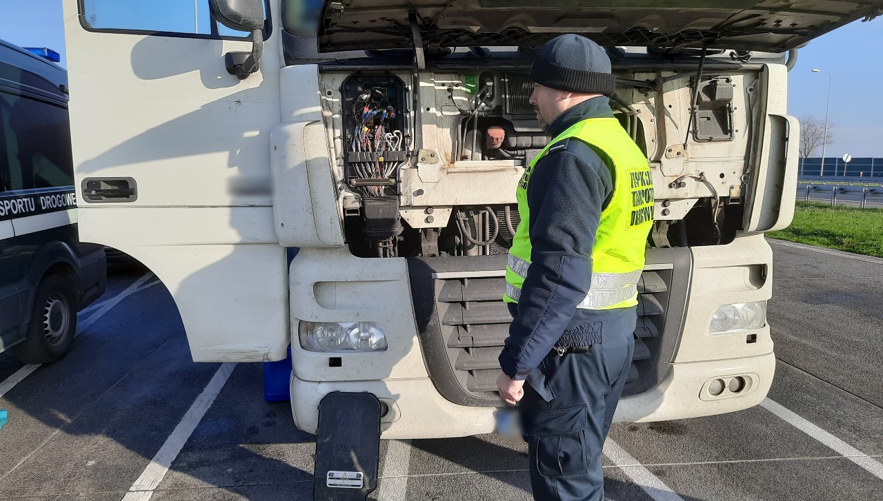 Nieoczyszczone spaliny z silnika ciągnika siodłowego wydostawały się do atmosfery przez dziurawy układ wydechowy. Szczegółowa kontrola stanu technicznego pojazdu wykazała jeszcze kilka innych usterek. Inspektorzy mazowieckiej Inspekcji Transportu Drogowego zatrzymali dowód rejestracyjny ciężarówki i zakazali jej dalszej jazdy.