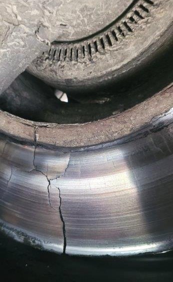 Inspektorzy przeprowadzili też szczegółową kontrolę stanu technicznego zestawu z użyciem urządzeń wchodzących w skład Mobilnej Jednostki Diagnostycznej. Wykryli w naczepie usterki zagrażające bezpieczeństwu ruchu drogowego. Przy prawym kole na trzeciej osi pojazdu była pęknięta tarcza hamulcowa. Mogła rozpaść się w trakcie jazdy i zablokować koło. Uwagę funkcjonariuszy zwróciło również nadmiernie zużyte i uszkodzone ogumienie naczepy.