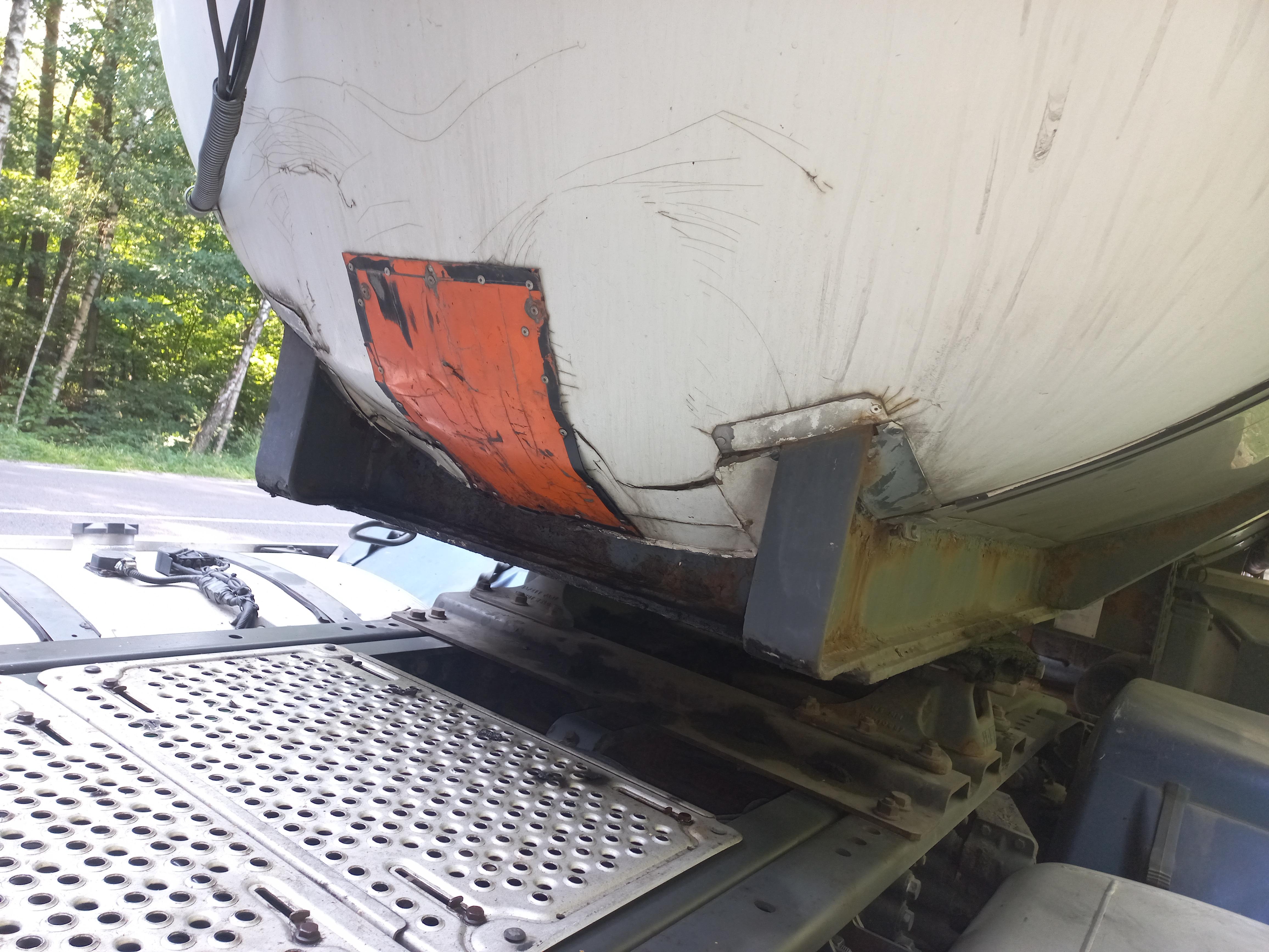 W trakcie kontroli stanu technicznego, funkcjonariusze ITD stwierdzili nieszczelność naczepy – cysterny. Przewożony olej napędowy wyciekał z dwóch miejsc: w dolnej, przedniej części oraz w dolnej, tylnej części pomiędzy drugą i trzecią osią. Wykryte nieszczelności cysterny nie były jedyną nieprawidłowością. Wyposażenie elektryczne nie spełniało wymogów umowy dotyczącej międzynarodowego przewozu drogowego towarów niebezpiecznych (ADR). Przewody instalacji elektrycznej pojazdu miały uszkodzoną osłonę oraz były owinięte taśmą izolacyjną i pospinane opaskami zaciskowymi. Oprócz tego wiele do życzenia pozostawiał stan ogumienia naczepy – cysterny. Dwie opony już nie powinny być użytkowane z powodu nadmiernego zużycia bieżnika.