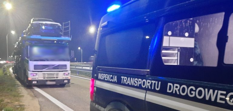 Kierowca litewskiej ciężarówki z samochodami osobowymi jechał zdecydowanie za długo bez wymaganej przerwy oraz skrócił odpoczynek dzienny. Naruszenia stwierdzili funkcjonariusze z mazowieckiej Inspekcji Transportu Drogowego.