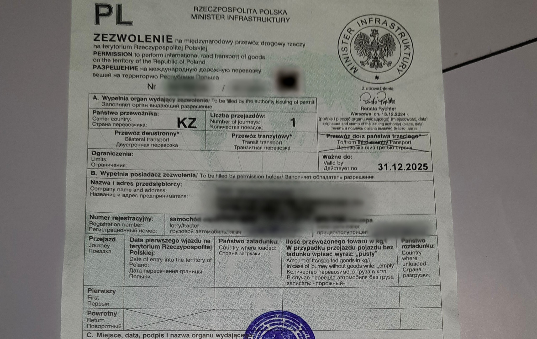 W trakcie czynności kontrolnych kierowca przedstawił wszystkie wymagane dokumenty. Okazało się, że jednorazowe zezwolenie na międzynarodowy przewóz drogowy rzeczy na terytorium RP tranzyt / przewóz dwustronny, jest nieważne. Dokument nie był wypełniony w części B. Brakowało wpisów dotyczących: daty pierwszego wjazdu na terytorium RP, państwa załadunku i państwa rozładunku oraz ilości przewożonego towaru. Kazachski przedsiębiorca mógł zatem wykorzystać jednorazowe zezwolenie do kolejnego przewozu na terytorium RP.