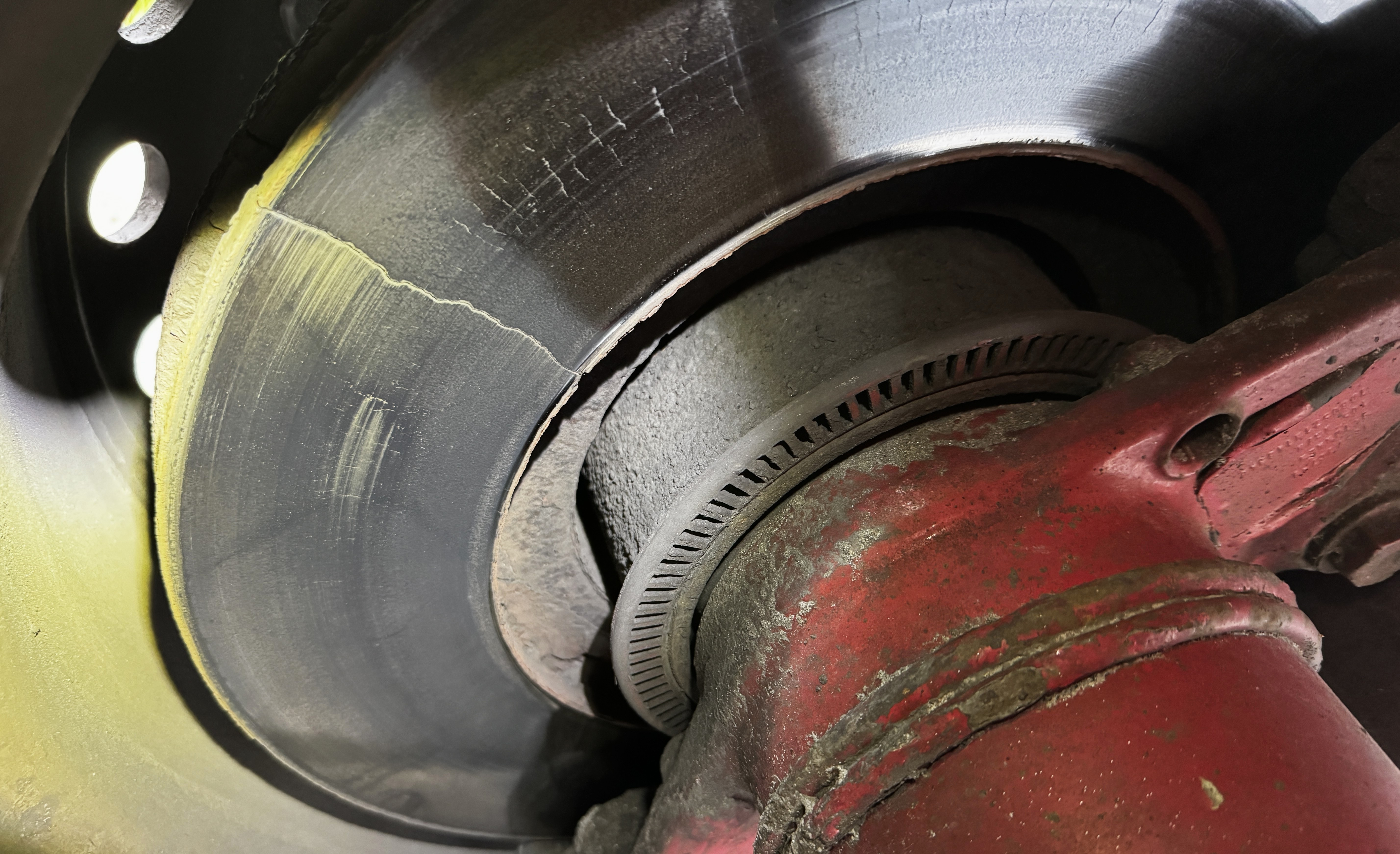 Z kolei w innym zatrzymanym zestawie, należącym do polskiego przedsiębiorcy, stwierdzono usterkę zagrażającą bezpieczeństwu ruchu drogowego. Przy prawym kole, na pierwszej osi naczepy, znajdowała się uszkodzona tarcza hamulcowa. Tarcza była pęknięta na całej szerokości roboczej. Użytkowanie tarczy w takim stanie groziło jej rozpadnięciem i zablokowaniem koła podczas jazdy. W tym przypadku kierowca otrzymał jeszcze drugi mandat w kwocie 1000 zł za zły stan techniczny pojazdu. Oprócz tego funkcjonariusze zatrzymali dowód rejestracyjny naczepy i wydali zakaz jej dalszej jazdy z miejsca kontroli do momentu naprawy usterki. Za dopuszczenie do ruchu drogowego pojazdu ciężarowego z usterką niebezpieczną będą również wszczęte postępowania administracyjne z ustawy o transporcie drogowym. Przewoźnikowi grozi kara w wysokości 2000 zł. 500-złotowej grzywny może spodziewać się osoba zarządzająca transportem w przedsiębiorstwie.