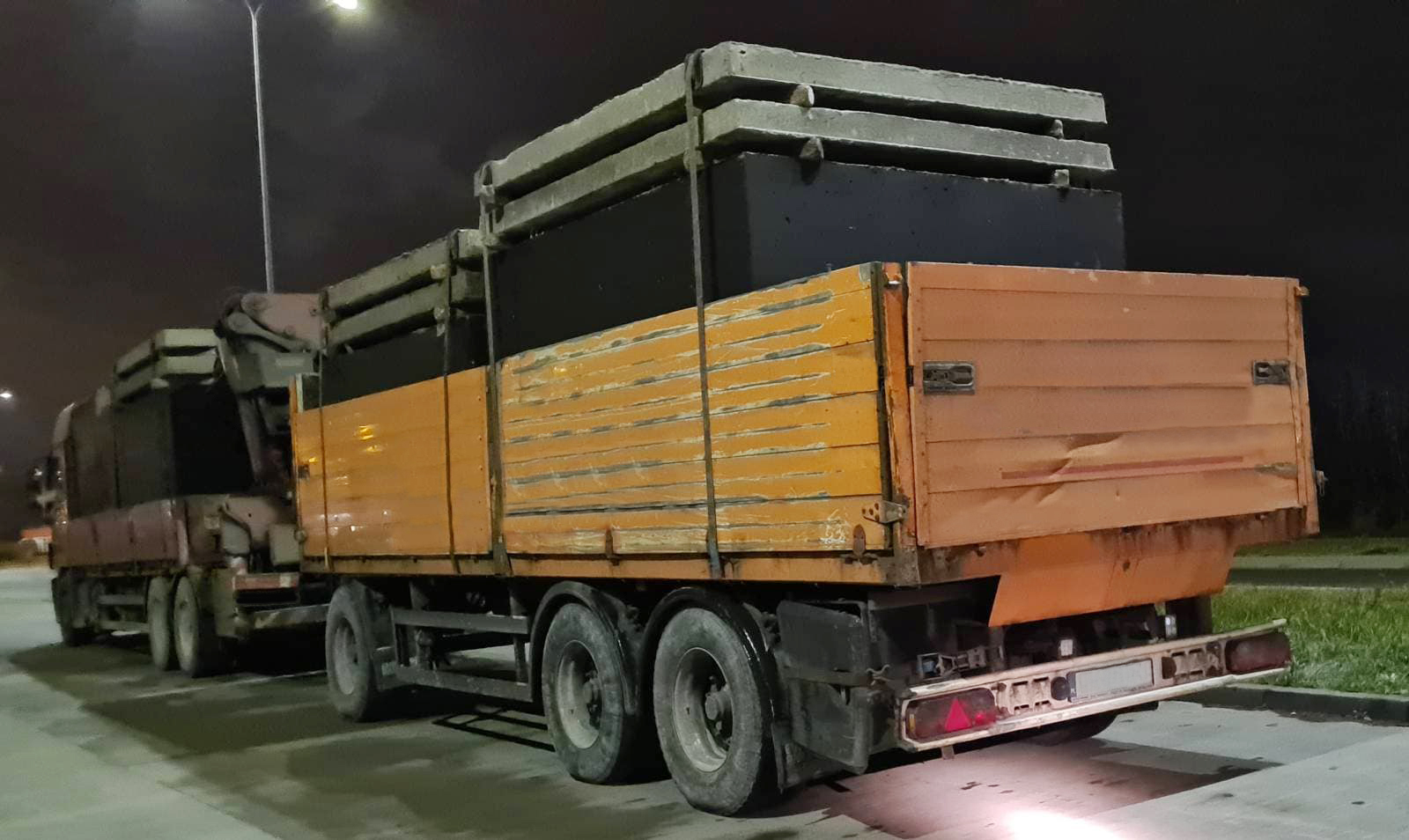 W nocy z wtorku na środę (21/22 listopada), na ul. Anny Walentynowicz w Radomiu, inspektorzy Inspekcji Transportu Drogowego zatrzymali do kontroli ciężarówkę z przyczepą. Zespół pojazdów przewoził cztery szamba betonowe z sześcioma pokrywami. Powodem podjęcia interwencji było podejrzenie przekroczenia dopuszczalnej ładowności i nacisków osi na drogę.
