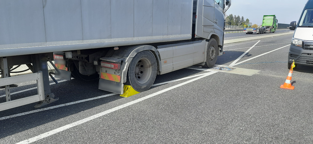 Ciężarówkę skierowano na inspekcyjne wagi. Zestaw wraz z ładunkiem ważył 44,1 t zamiast dopuszczalnych 40 t. Za duża masa przewożonej zrębki spowodowała także przekroczenie dozwolonego nacisku pojedynczej osi napędowej ciągnika siodłowego na drogę. Nacisk ten wynosił 12,2 t przy normie 11,5 t. Podczas kontroli stwierdzono również przekroczenia nacisków grupy potrójnej osi naczepy. Naciski wynosiły 24,3 t zamiast dopuszczalnych 24 t. Oprócz tego pojazd członowy był za długi.