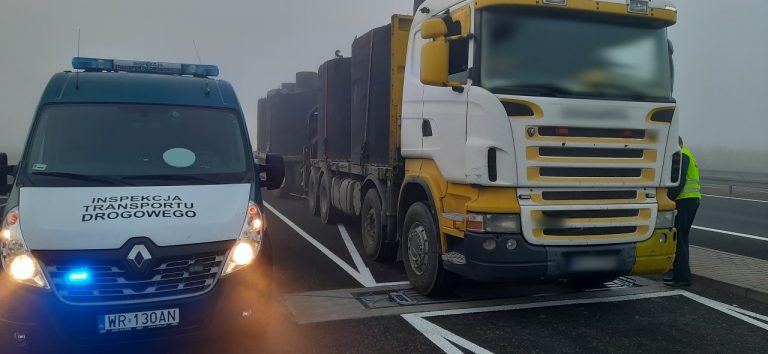 W piątek (28 października), na ekspresowej „siódemce” koło Grójca, patrol ITD zatrzymał do kontroli drogowej samochód ciężarowy z przyczepą. Zespołem pojazdów przewożono cztery duże zbiorniki na nieczystości płynne. Powodem podjęcia tej interwencji było podejrzenie przekroczenia dozwolonego tonażu ciężarówki. Zespół pojazdów wraz z ładunkiem ważył 60,8 t zamiast dopuszczalnych 40 t. Tak duża masa ładunku spowodowała przekroczenie podwójnej osi napędowej samochodu ciężarowego na drogę o 8,5 t. Nacisk ten wynosił 26,5 t zamiast 18 t. Za duży o 0,7 t był również nacisk ostatniej osi przyczepy. Wynosił on 10,7 t zamiast 10 t. Oprócz tego kontrola wykazała, że samochód ciężarowy z przyczepą miał 19,45 m długości zamiast przepisowych 18,75 m długości. W tej sytuacji parametry zespołu pojazdów wymagały również, żeby jego trasę przejazdu zabezpieczał jeden pojazd pilotujący.