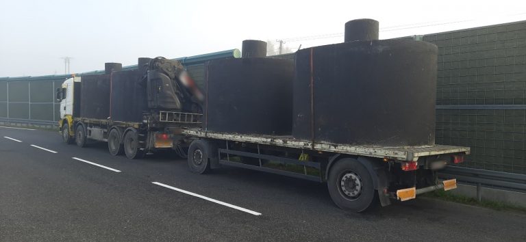 Blisko 61 ton zamiast dopuszczalnych 40 ważył samochód ciężarowy z przyczepą, którym były przewożone cztery szamba betonowe. Tak ciężki ładunek spowodował znaczne przekroczenie dozwolonych nacisków osi zespołu pojazdów na drogę. Nieprawidłowy transport wstrzymano. Wobec przewoźnika zostanie wszczęte postępowanie administracyjne.