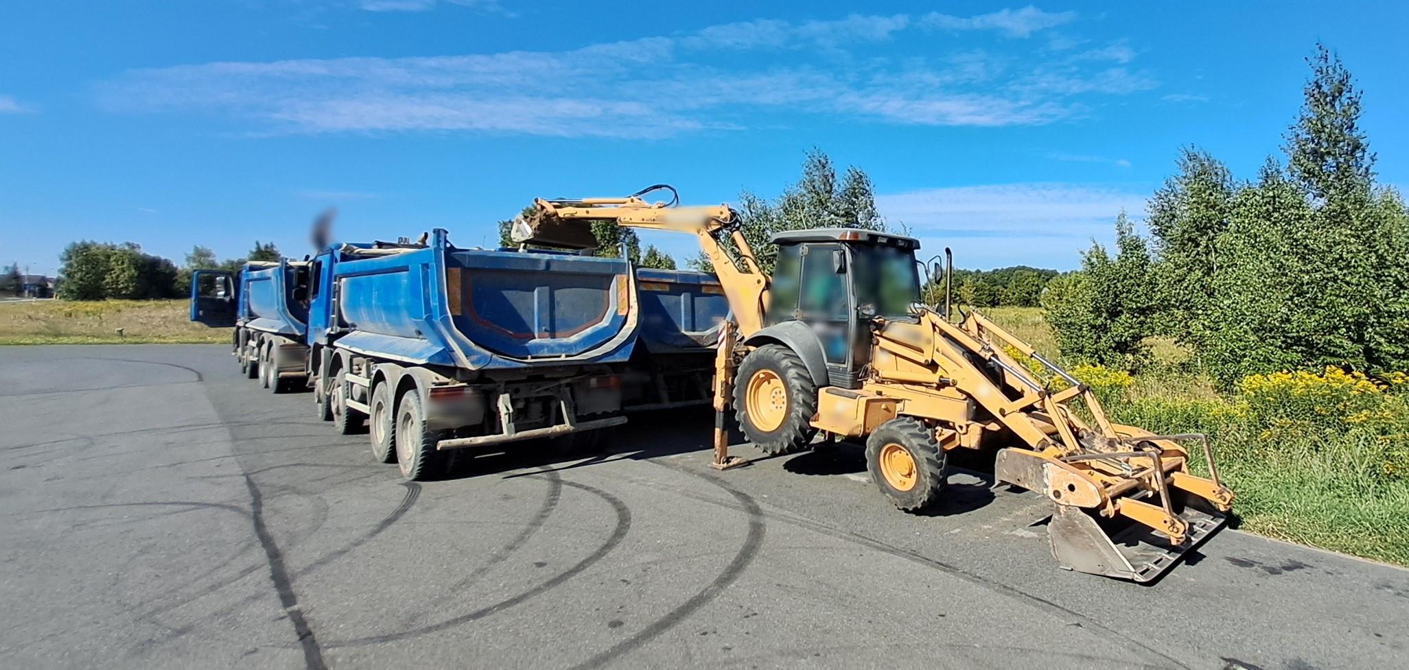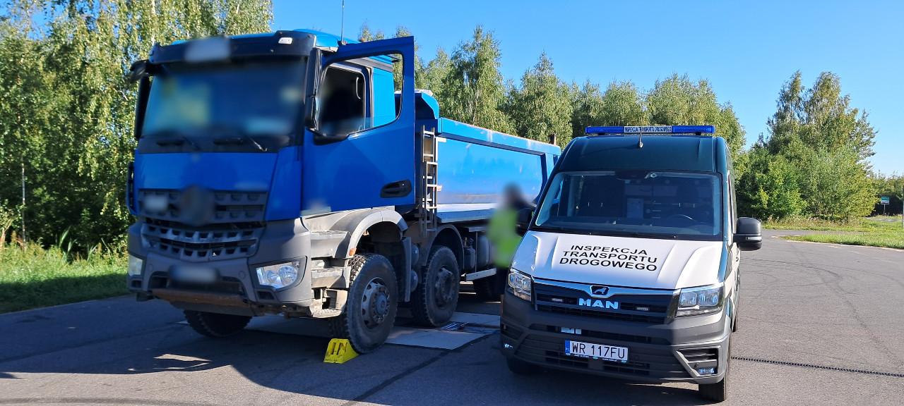 Oprócz tego, w trakcie kontroli stanu technicznego, inspektorzy ITD stwierdzili dwie usterki w jednej z przeciążonych wywrotek. Za znacznie przeciętą oponę na trzeciej osi i pęknięcie przedniej szyby, zatrzymali dowód rejestracyjny pojazdu.