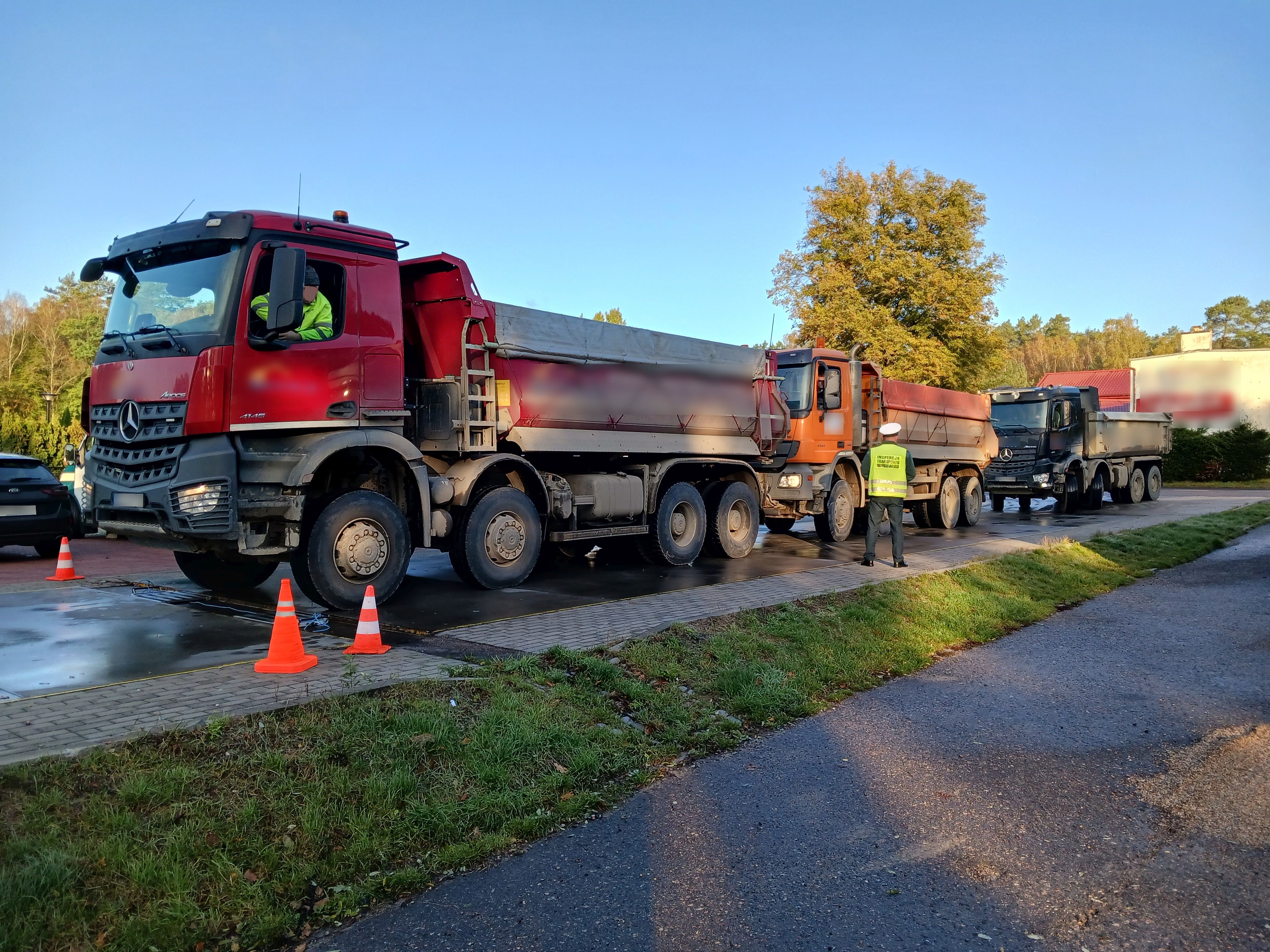 z Oddziału Koszalin, zatrzymali do kontroli trzy pojazdy ciężarowe należące do tego samego przewoźnika, którymi przewożono ziemię zasypową. Pojazdy zostały wytypowane do kontroli ze względu na podejrzenie przekroczenia dopuszczalnych paramentów wagowych. Inspektorzy skierowali pojazdy na stanowisko wagowe, gdzie dokonano szczegółowych pomiarów. Przypuszczenia inspektorów potwierdziły wyniki ważenia. We wszystkich przypadkach stwierdzono przekroczenia dopuszczalnej masy całkowitej pojazdów oraz nacisków na osie.