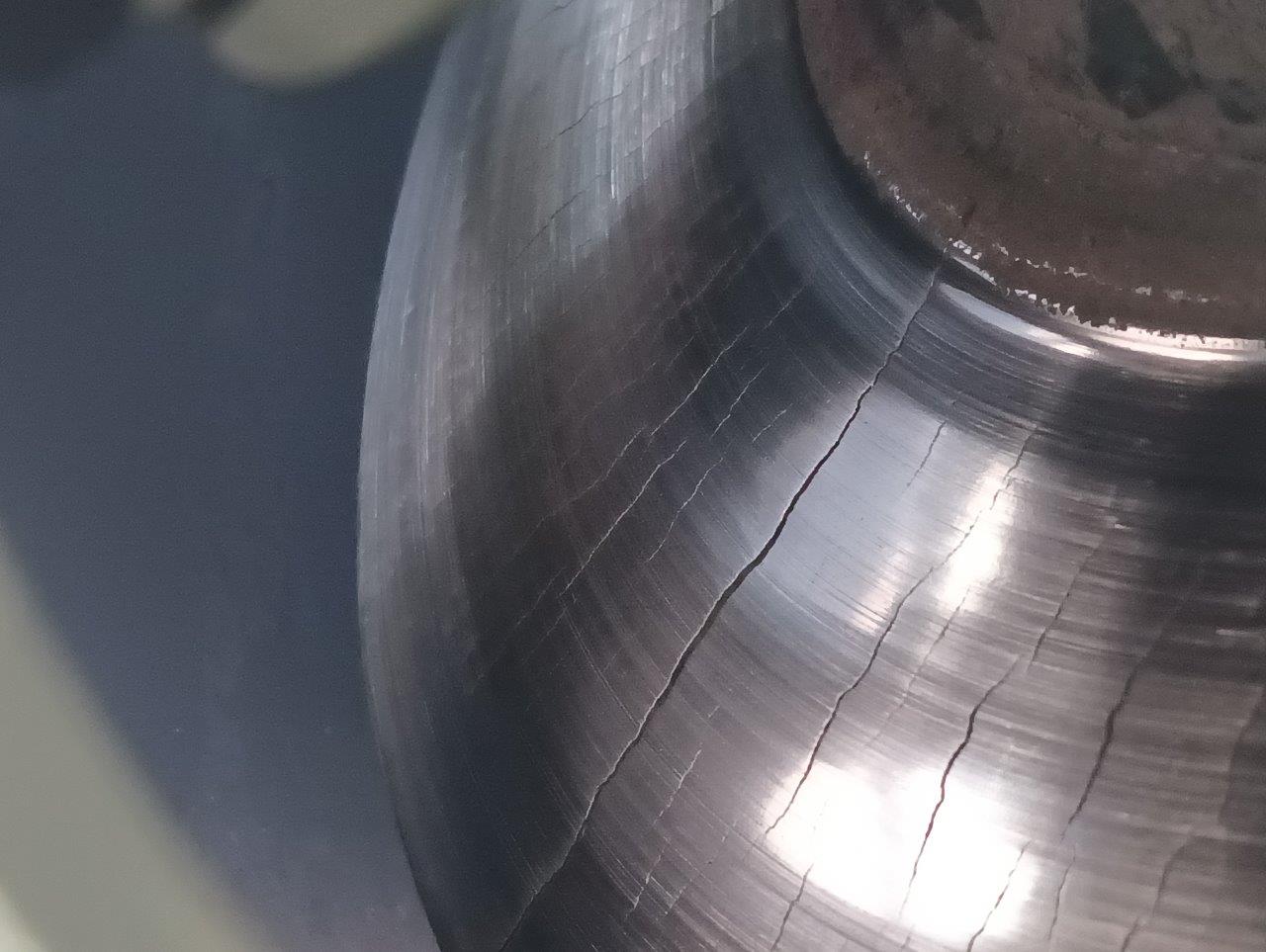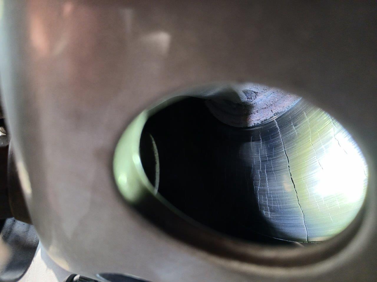 Nieoryginalna tablica rejestracyjna i popękana tarcza hamulcowa