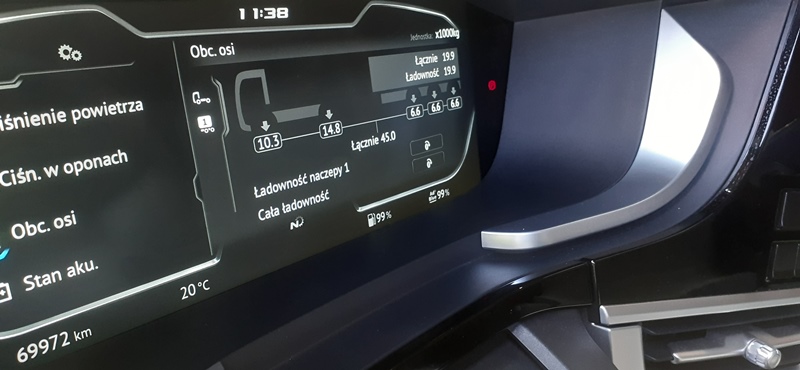 W wyniku przeprowadzonych pomiarów wymiarów zewnętrznych kontrolowanego środka transportu z ładunkiem stwierdzono przekroczenie o 0,4 m dopuszczalnej długości pojazdu oraz przekroczenie o 2 t dopuszczalnego nacisku pojedynczej osi napędowej ciągnika samochodowego wynoszący 13,5 t. Nadmiar ładunku powodujący przekroczenie nacisku osi został przeładowany przez przewoźnika na inny pojazd.