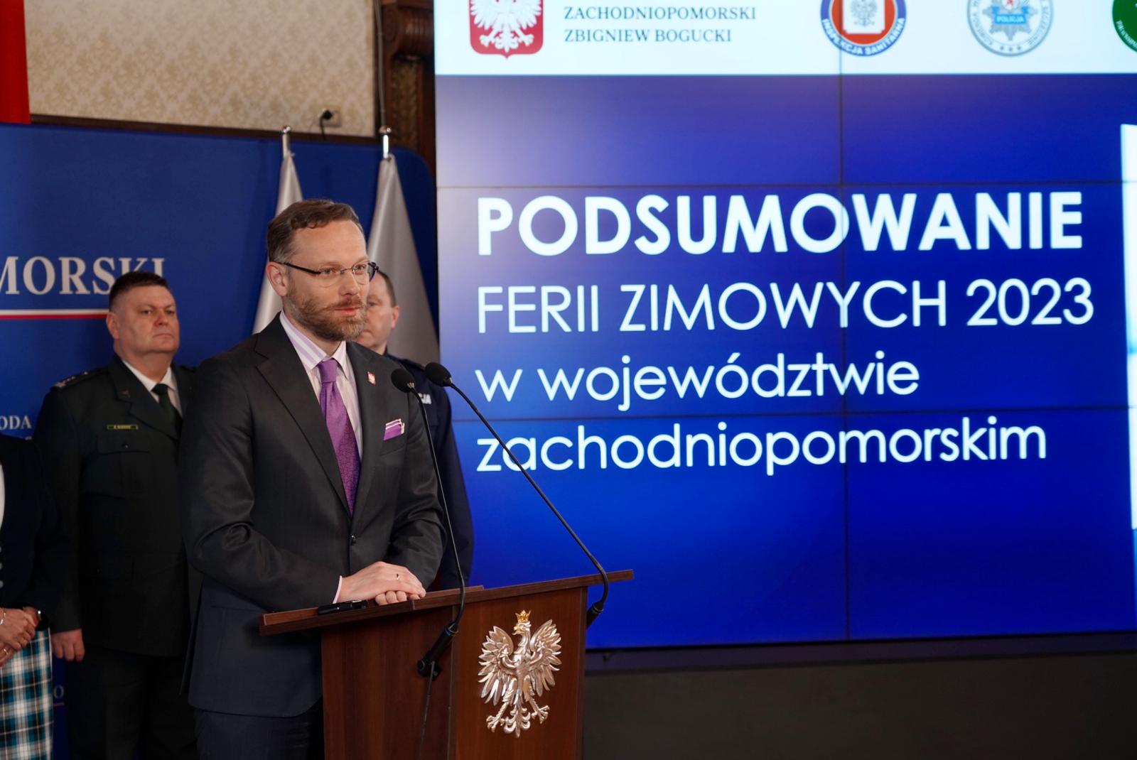 Ferie zimowe w województwie zachodniopomorskim były bezpieczne, m.in dzięki wytężonej pracy służb oraz rozwadze i odpowiedzialności mieszkańców, zarówno tych młodszych jak i starszych –zaznaczył podczas konferencji prasowej wojewoda Zbigniew Bogucki.