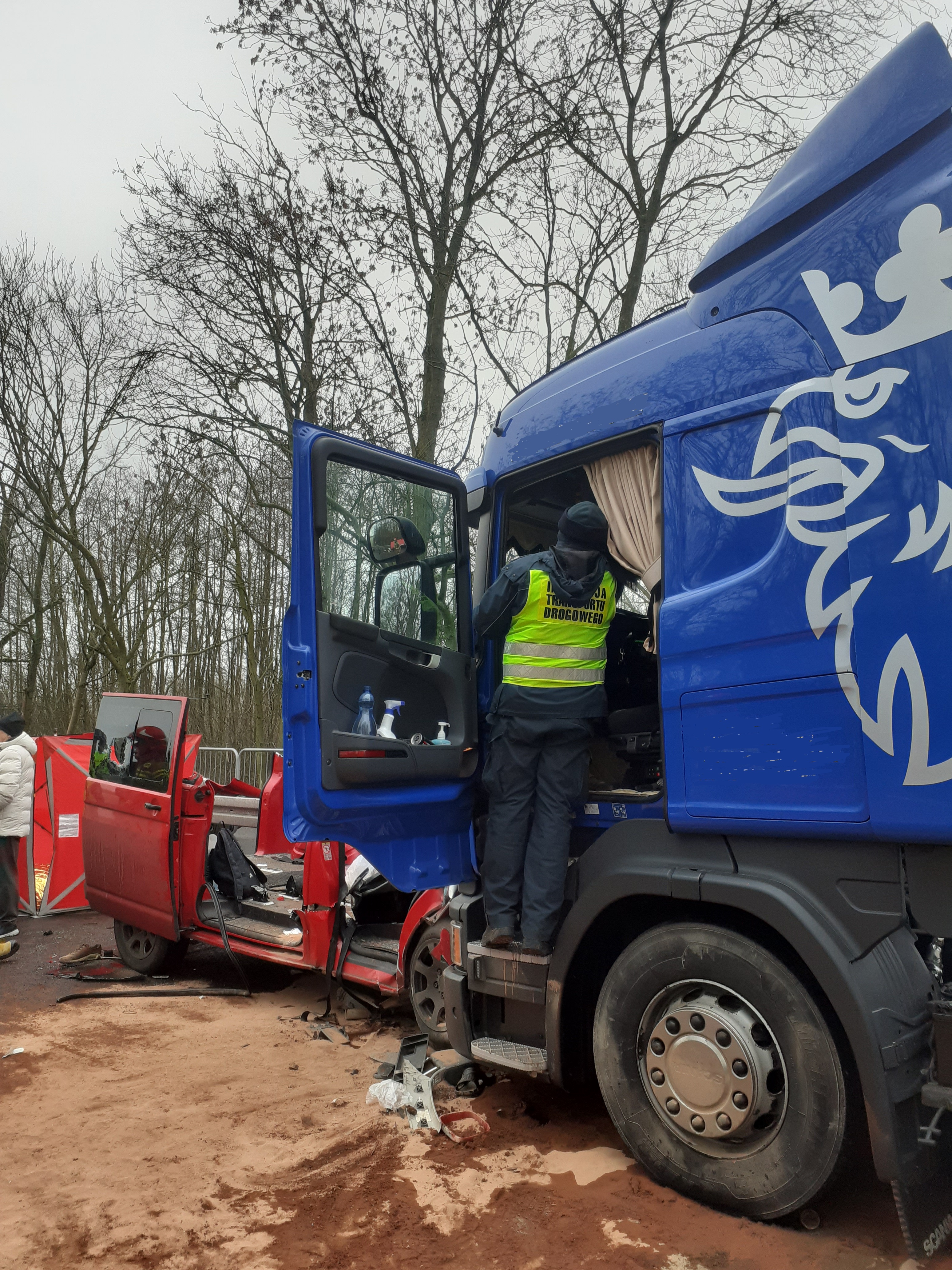 Funkcjonariusze zachodniopomorskiej Inspekcji Transportu Drogowego zajmowali się sczytaniem danych z tachografu i karty kierowcy ciężarówki, która zderzyła się czołowo z busem osobowym. Pasażer busa zginął na miejscu a cztery osoby z poważnymi obrażeniami zostali odwiezieni do szpitala. Informacje o prędkości ciężarówki i czasie pracy kierowcy przekazano Policji.
