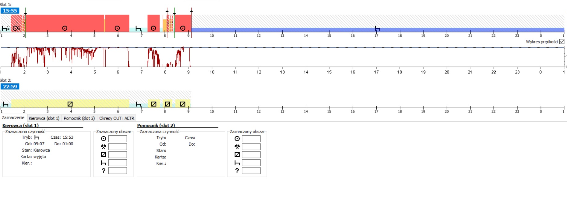 Analiza ostatnich 28 dni zapisów na karcie kierowcy i tachografu wykazała, że zdarzeń gdzie nie rejestrowano przejazdów na karcie kierowcy było kilkanaście, rzekomo wykonywane były przez innego kierowcę.