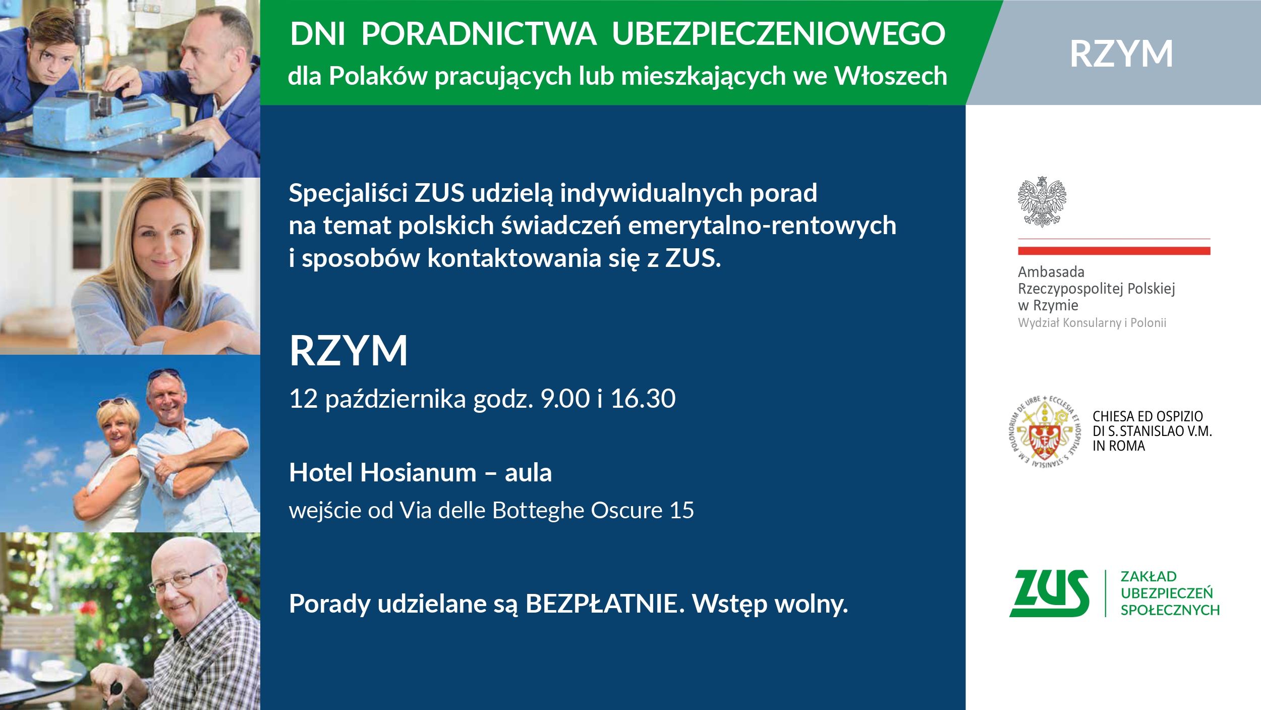 W dniach 11-12 października z inicjatywy Zakładu Ubezpieczeń Społecznych oraz polskich placówek dyplomatycznych i konsularnych we Włoszech odbędą się Dni Poradnictwa w zakresie świadczeń emerytalno-rentowych prowadzone przez ekspertów ZUS.