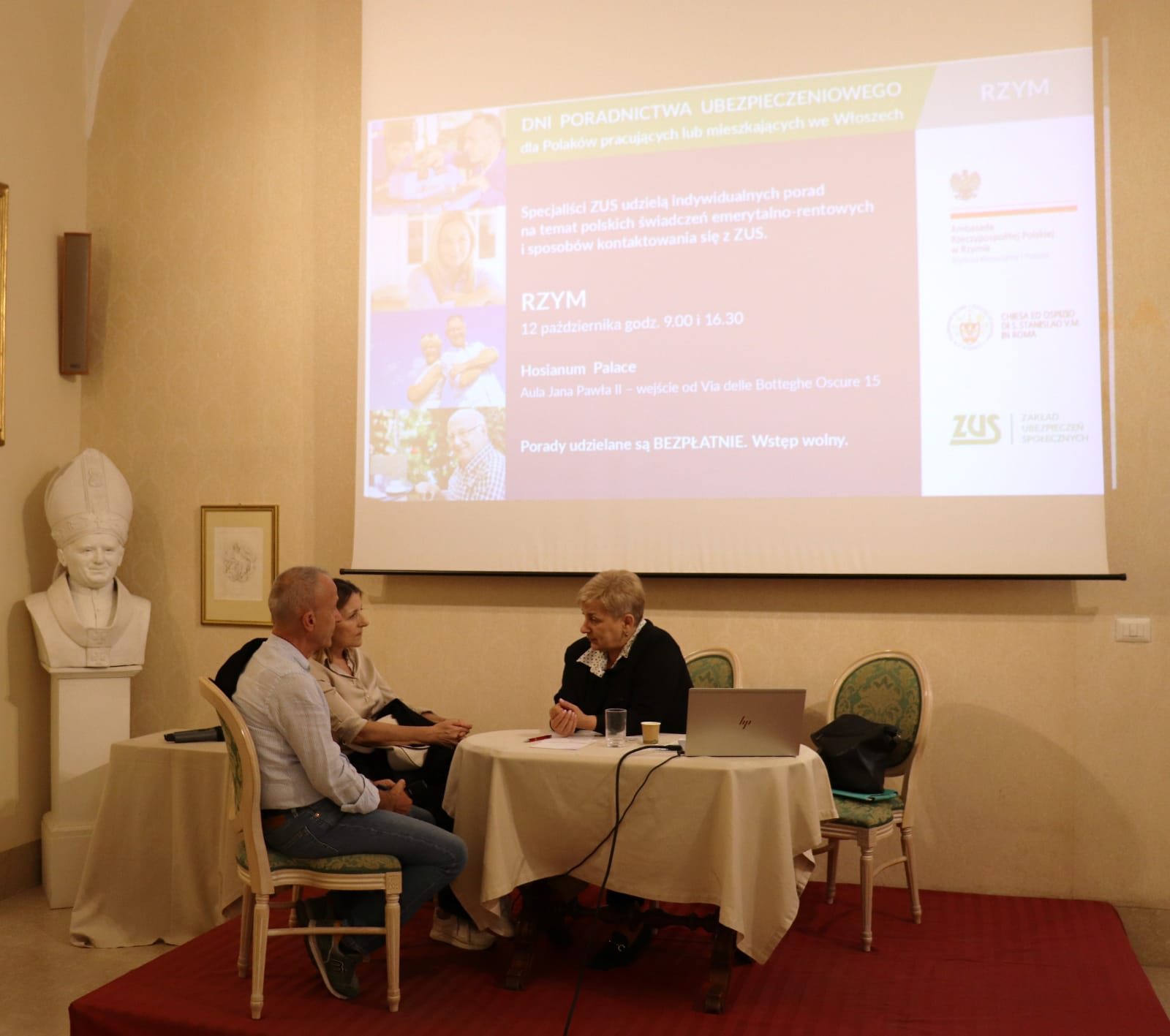 Ambasada RP w Rzymie i Konsulat Generalny RP w Mediolanie zorganizowały wspólnie z Zakładem Ubezpieczeń Społecznych Dni Poradnictwa w zakresie ubezpieczenia społecznego dla Polaków pracujących lub mieszkających we Włoszech, które odbyły się w dniach 11 i 12 października 2025 r.