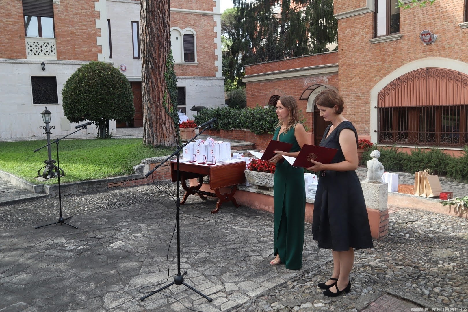 Podczas części oficjalnej uroczystości Ambasador Anna Maria Anders wręczyła medale KEN przyznane przez Ministra Edukacji Narodowej trzem nauczycielkom ze szkół polonijnych i zarazem współzałożycielkom Rady Oświaty Polonijnej we Włoszech: Agacie Jankowskiej, Annie Smolińskiej i Joannie Wesołowskiej. Nie obyło się bez emocji i wzruszeń.
