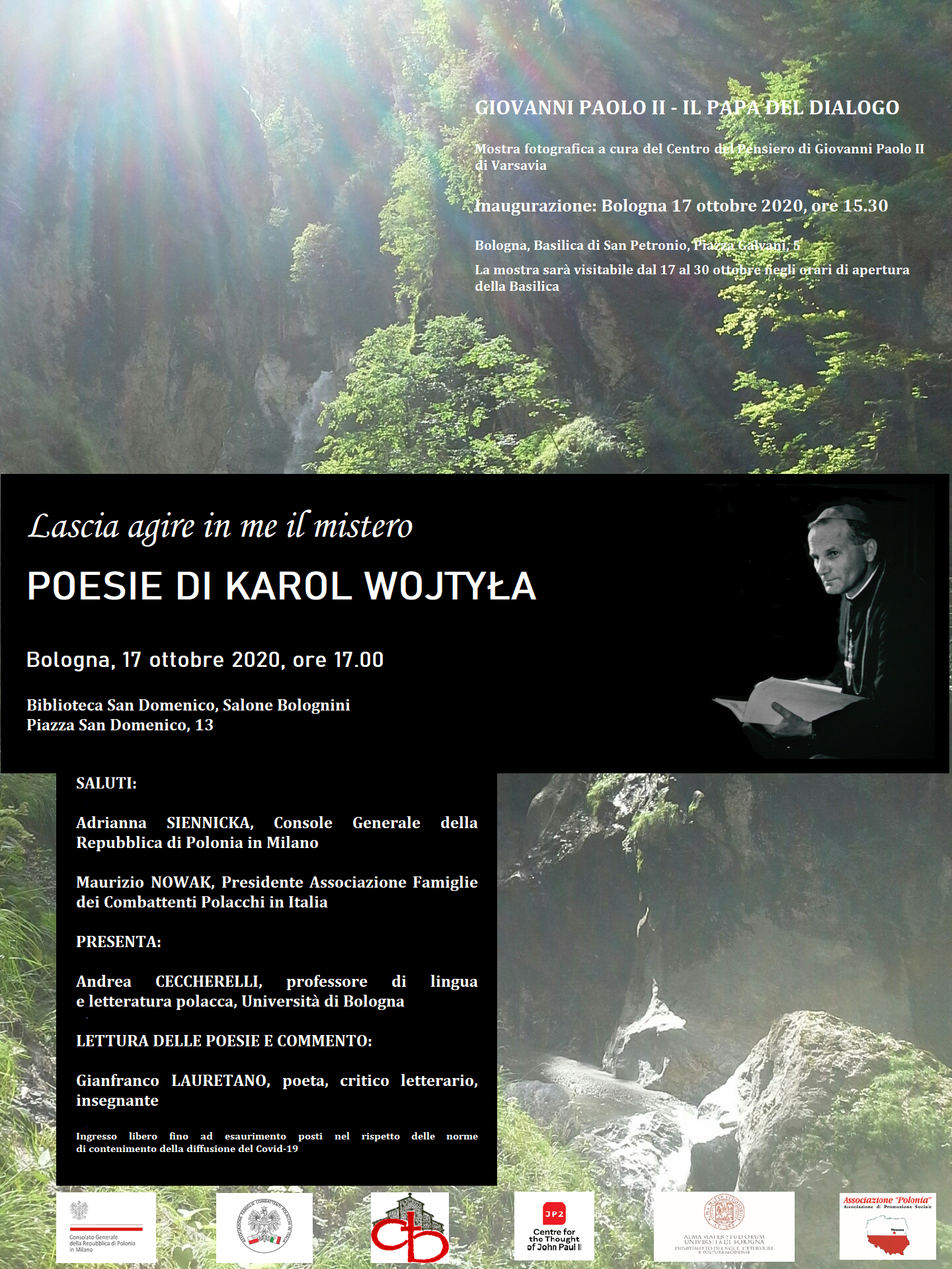 Wieczorem zapraszamy na spotkanie z poezją Karola Wojtyły, które odbędzie się w Centro San Domenico. Poezję zaprezentuje prof. Andrea Ceccherelli, wykładowca polonistyki na Uniwersytecie Bolońskim, przeczyta i skomentuje Gianfranco Lauretano – poeta i krytyk literacki.