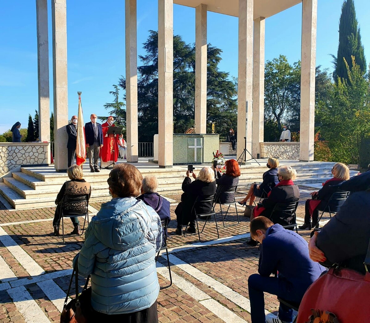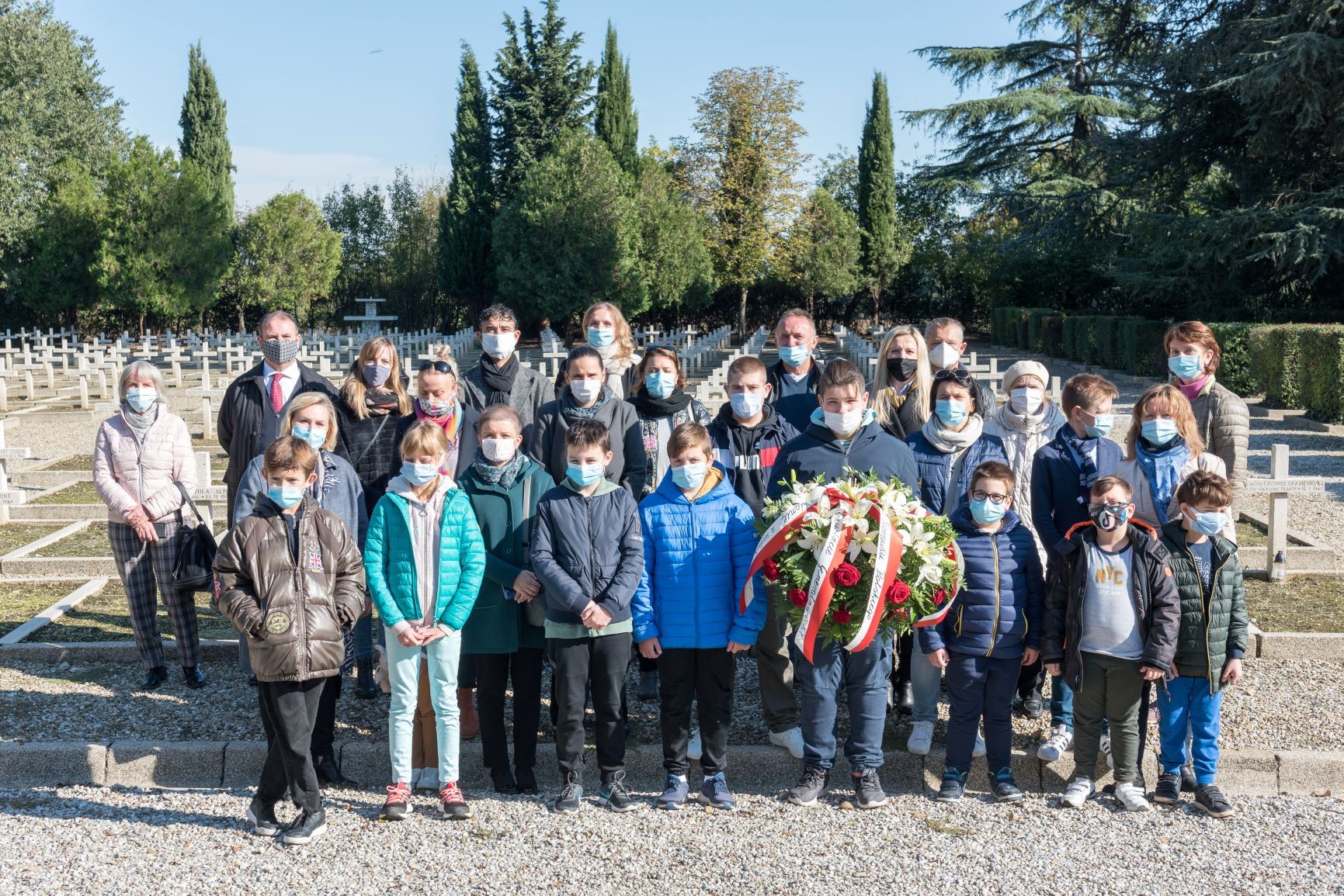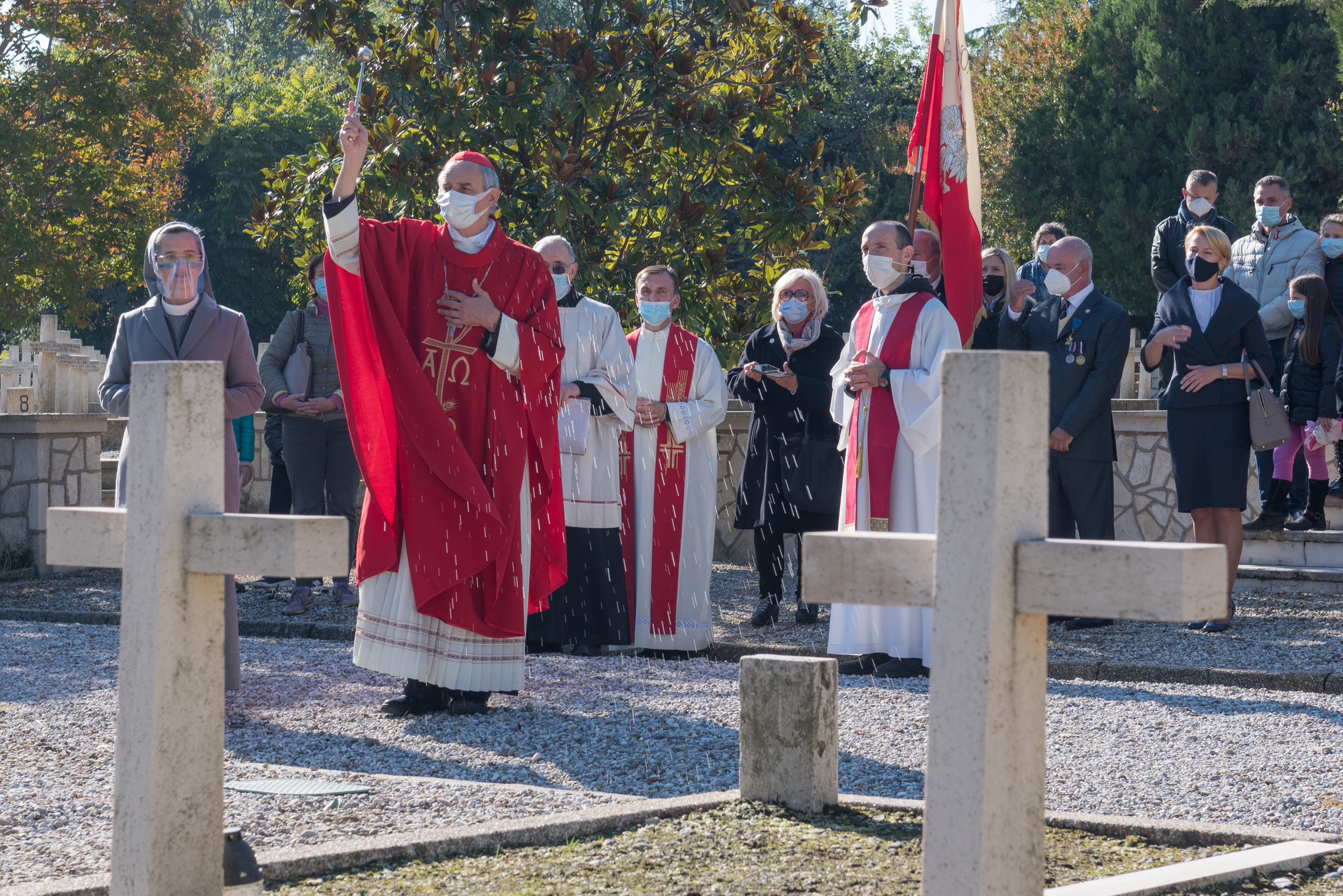 Spotkanie rozpoczęła Msza Święta celebrowana na Polskim Cmentarzu Wojennym w Bolonii przez J. E. Kardynała Matteo M. Zuppiego, Arcybiskupa Bolonii oraz ks. Tomasza Klimczaka duszpasterza Polskiej Misji Katolickiej w Bolonii – z udziałem rodzin kombatantów, organizacji polonijnych, Szkoły Polskiej im. 2. Korpusu Polskiego przy Konsulacie RP w Mediolanie z siedzibą w Bolonii. W wygłoszonej podczas Mszy św. homilii J. E. Kardynał wyraził wdzięczność poległym za dar wolności i wezwał wszystkich do budowania pokoju. Na zakończenie liturgii ks. kardynał odmówił specjalną modlitwę za poległych oraz poświęcił groby.