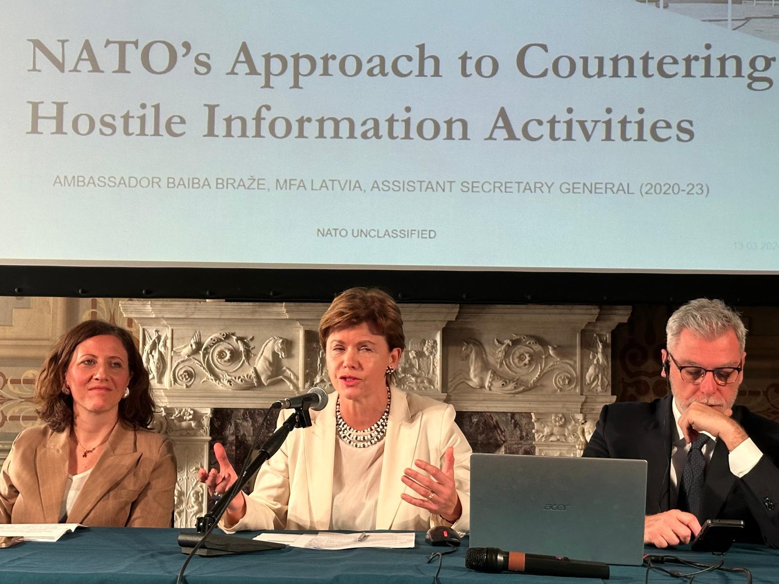 Współorganizatorami wydarzenia pt. „Guerra dell’informazione. Countering state-sponsored disinformation” były: Ambasada Ukrainy, Ambasada Estonii, Ambasada Litwy, Ambasada Łotwy, Instytut Polski w Rzymie oraz organizacja Women in International Security Italy.