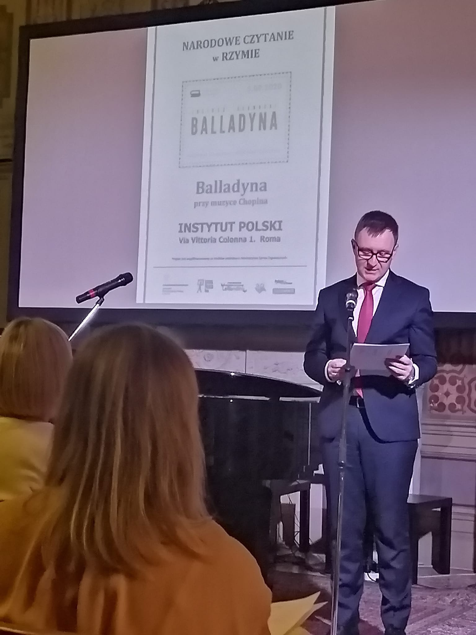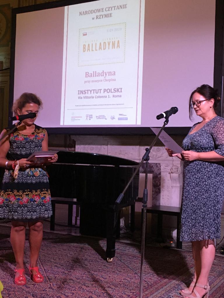 Fragmenty „Balladyny” przeczytali też przedstawiciele rzymskiej Polonii: m.in. Urszula Stefańska – Andreini, prezes Związku Polaków we Włoszech, dyrektorzy, grono pedagogiczne oraz uczniowie Szkoły Polskiej w Rzymie i Polskiej Szkoły Katolickiej w Rzymie, przedstawiciele polskich stowarzyszeń i mediów polonijnych oraz niezrzeszeni Polacy zamieszkali w Rzymie i okolicach. Korzystając z połączenia internetowego, do wspólnego czytania włączyła się również Polonia z innych regionów, m.in. Marche oraz Kampanii. Czytaniu towarzyszyła muzyka Fryderyka Chopina w wykonaniu Joanny Łukaszewicz i Dario Adella (Fortepian).