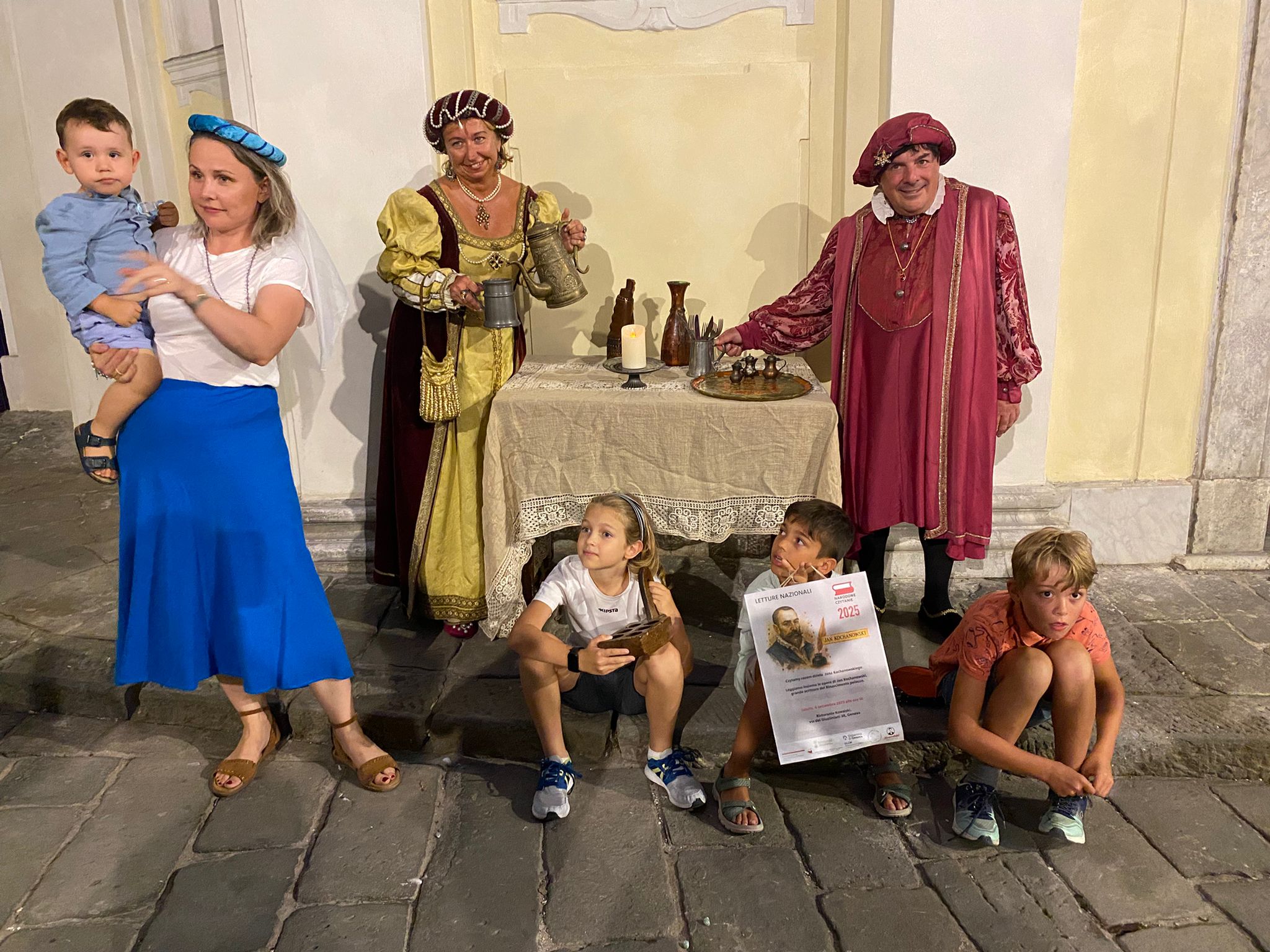 W Genui lekturom dzieł Jana z Czarnolasu w zasłużonej dla promocji kultury polskiej restauracji Kowalski towarzyszyła degustacja polskich potraw tradycyjnych oraz występ renesansowej grupy rekonstrukcyjnej Gruppo Storico Sestrese. Utwory przy akompaniamencie muzyki z epoki recytowali członkowie stowarzyszeń polonijnych, studenci polonistyki, uczniowie szkoły polskiej i ich rodziny oraz włoscy sympatycy kultury polskiej. Spotkanie przygotowała i poprowadziła polonistka Uniwersytetu w Genui i działaczka Centrum edukacji i integracji społecznej Bratanki Karolina Kowalcze-Franiuk.