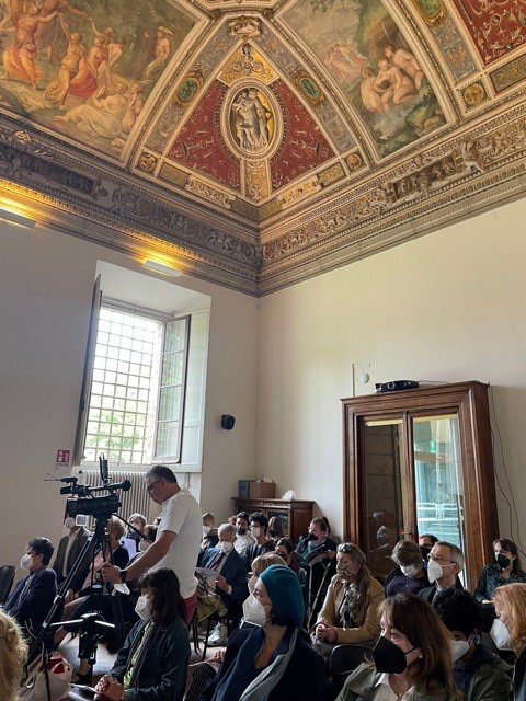 W godzinach porannych miała miejsce konferencja inaugurująca wystawę „Gustaw Herling-Grudziński. Portret epoki”, podczas której głos zabrali jej kuratorzy: Alessandro Ajres i Krystyna Jaworski z Uniwersytetu w Turynie oraz Marta Herling, córka pisarza. Spotkanie moderował Paolo Morawski, prezes rzymskiej Fundacji im. Margrabiny J. S. Umiastowskiej. Gości przywitała Ambasador RP w Rzymie Anna Maria Anders, a następnie głos zabrali poseł Federico Mollicone, oraz dyrektor Instytutu Polskiego w Rzymie Łukasz Paprotny. W konferencji uczestniczyli ponadto: konsul Agata Ibek-Wojtasik, senator Jaś Gawroński i dyrektor rzymskiego Muzeum Etruskiego Valentino Nizzo. Na zakończenie uczestnicy konferencji zwiedzili wystawę, która została pokazana w przepięknej posiadłości Villa Poniatowski, należącej do bratanka ostatniego króla Polski - księcia Stanisława Poniatowskiego.