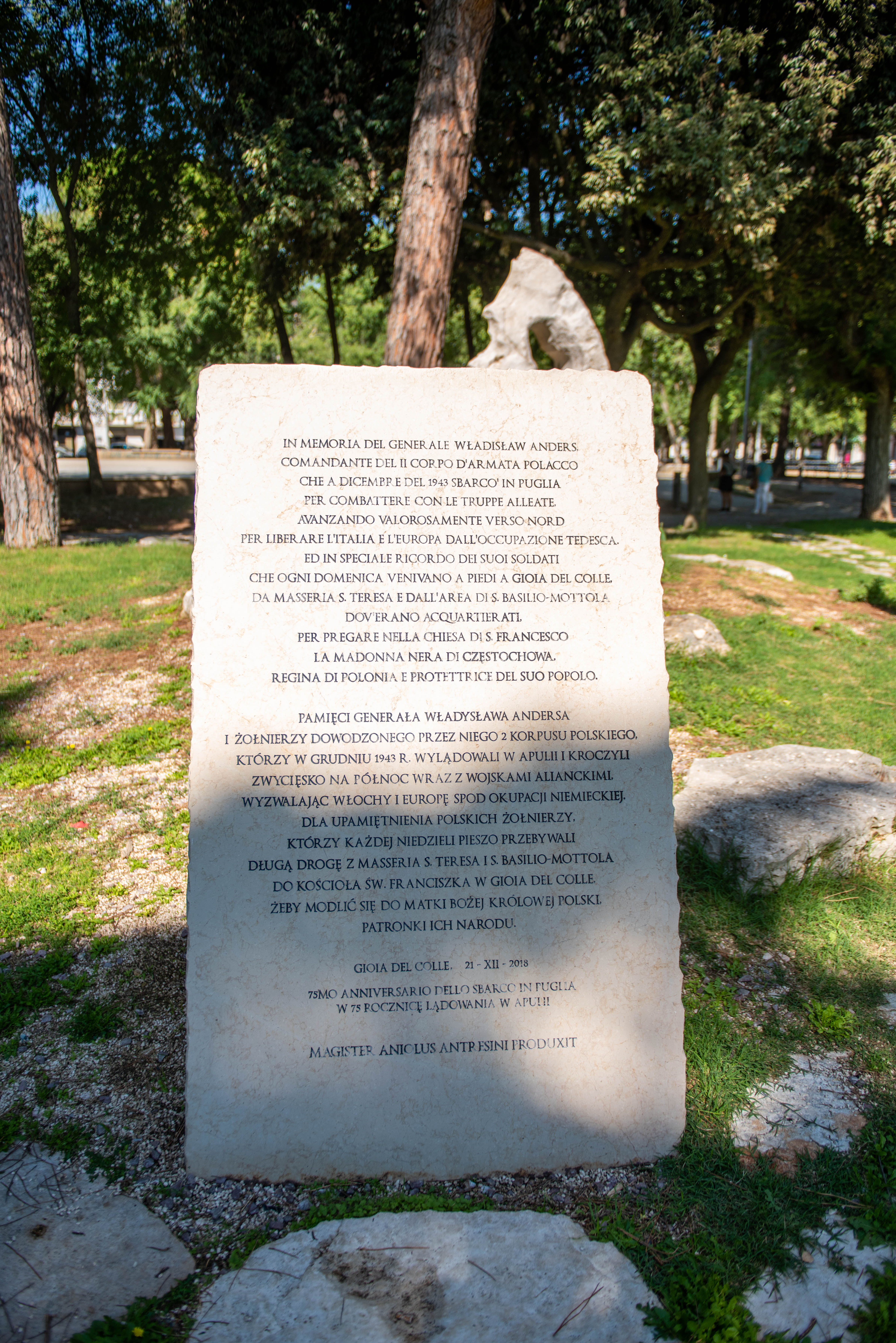 16 grudnia 2018 na placu Piazza Pinto został odsłonięty dzięki staraniom włoskiego działacza i sympatyka historii Polski - Angelo Antresini kamienny pomnik wraz z tablicą pamiątkową na cześć pobytu w Apulii generała Władysława Andersa i jego żołnierzy.