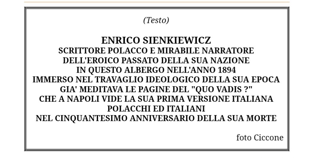Pracował tu nad powieścią Quo vadis, która właśnie w Neapolu została po raz pierwszy wydana w języku włoskim. Tablicę pamiątkową wspólnie ufundowała społeczność polska i włoska w pięćdziesiątą rocznicę śmierci pisarza.