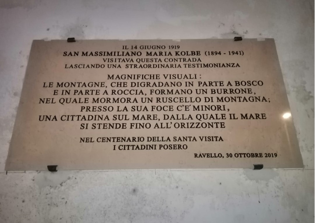 W chwili obecnej w Ravello w Zakonie braci Franciszkanόw nadal znajduje się cela, w ktόrej mieszkał przez miesiąc ojciec Kolbe, nie ma niestety możliwości zwiedzenia ani zakonu, ani celi.