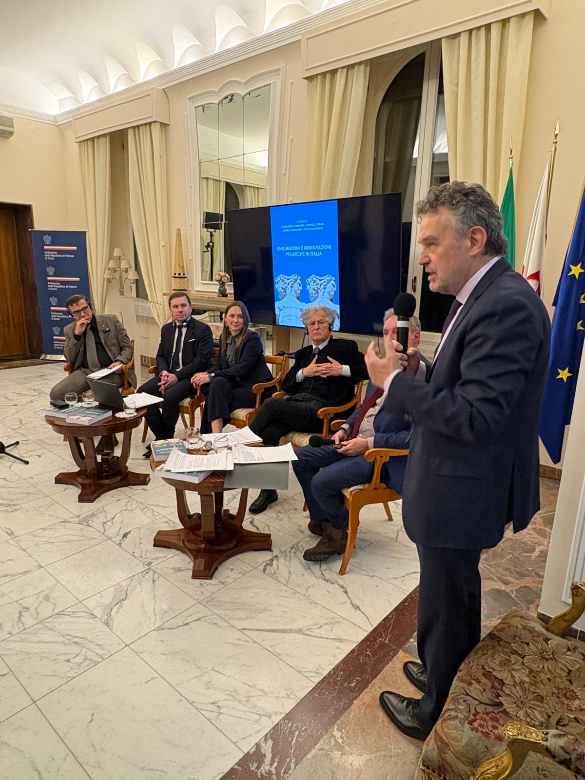 W siedzibie Ambasady RP w Rzymie miała miejsce 27 listopada prezentacja książki „Emigrazioni e immigrazioni polacche in Italia. Doppi sguardi” (Emigracje i imigracje polskie we Włoszech. Podwójne spojrzenia) pod redakcją Carmelo Brudi, Francesco Carchedi, Kamili Kowalskiej i Rafała Raczyńskiego.