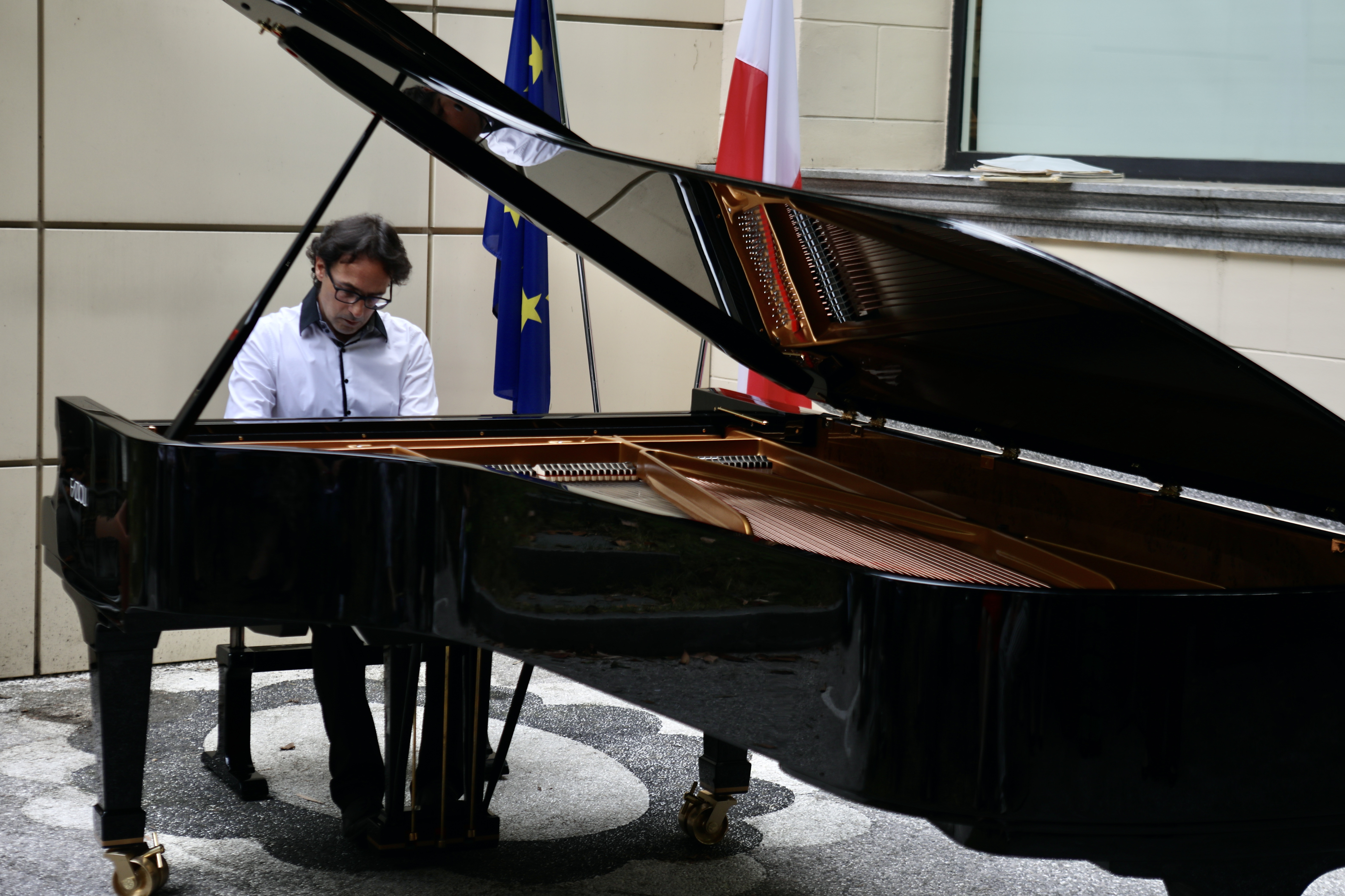 Po konferencji, w ogrodach Konsulatu Generalnego RP odbył się koncert chopinowski w wykonaniu pianisty włosko-polskiego pochodzenia, Claudio Soviero.
