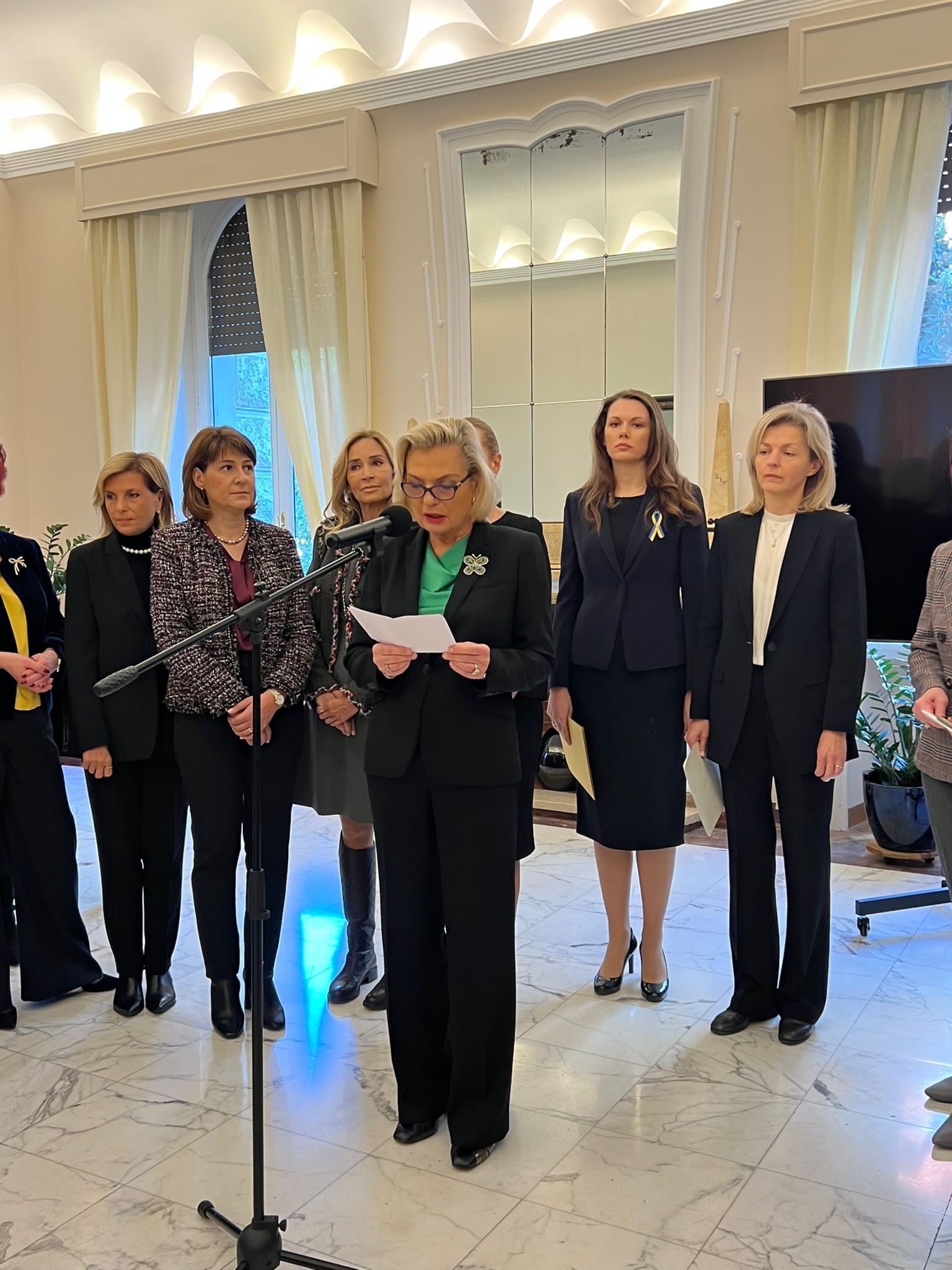 W imieniu ukraińskich kobiet głos zabrała małżonka ambasadora Ukrainy we Włoszech, Kateryna Melnyk, która wyraziła wdzięczność za wsparcie ze strony kobiet-ambasador. "Moja Ukraina przechodzi obecnie przez najczarniejsze karty swojej historii. Nie można zrozumieć okropności, jakie niesie ze sobą wojna Rosji z Ukrainą. Nie da się o nich zapomnieć, nie da się wybaczyć, ale trzeba o nich mówić" – podkreśliła.
