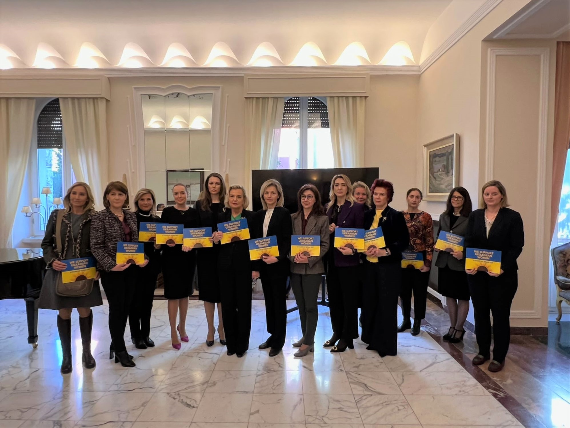 Podczas spotkania Ambasador RP Anna Maria Anders podkreśliła znaczenie wspierania ukraińskich kobiet w obliczu okrucieństwa wojsk rosyjskich oraz podziękowała obecnym ambasador za wsparcie inicjatywy. Ambasador Litwy Dalia Kreiviene odczytała wspólne przesłanie kobiet-ambasador, w którym przypomniała raport ONZ opisujący liczne przypadki stosowania przez rosyjskich żołnierzy przemocy seksualnej jako broni, zaznaczając, że ich ofiarą padają nawet 4-letnie dziewczynki.