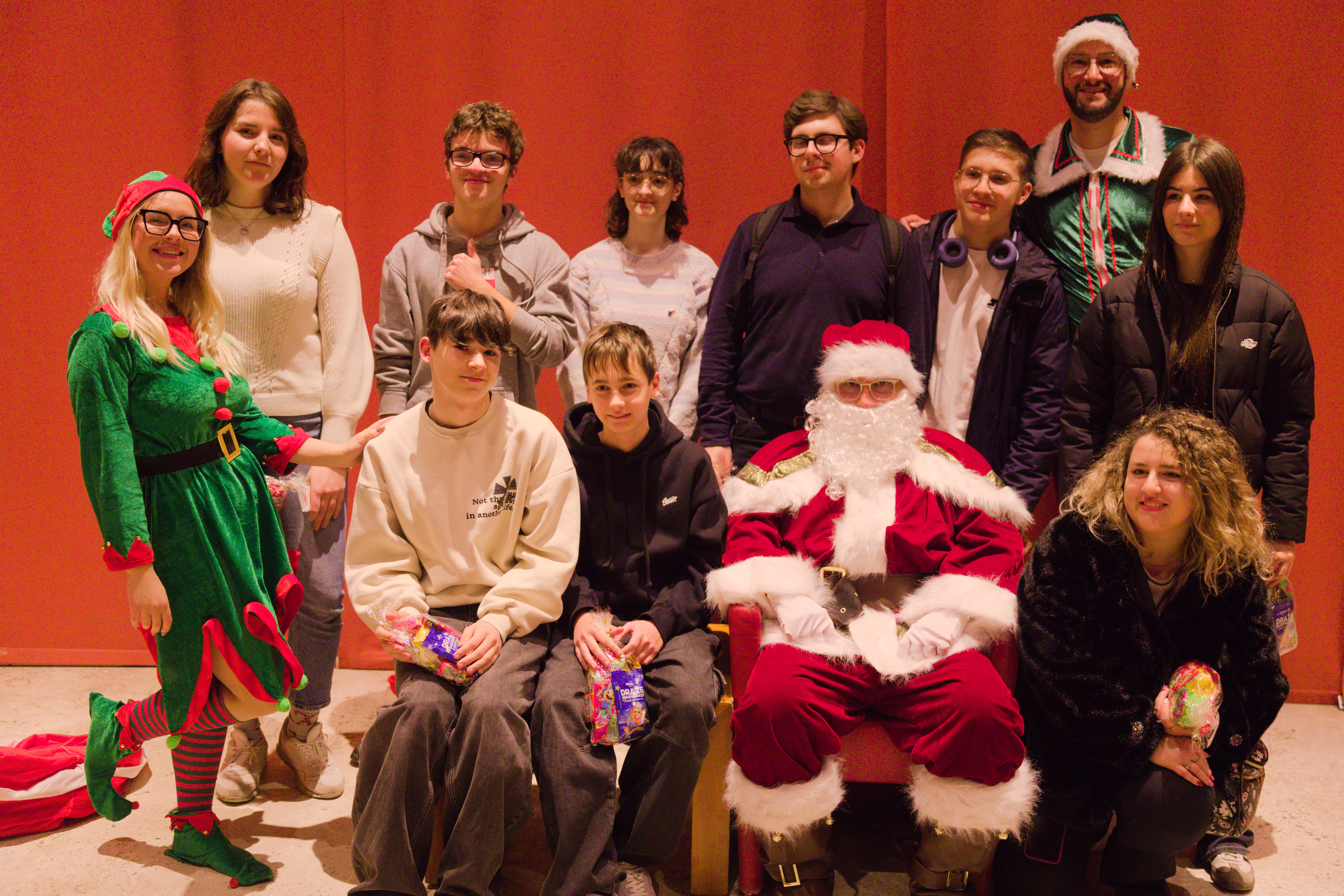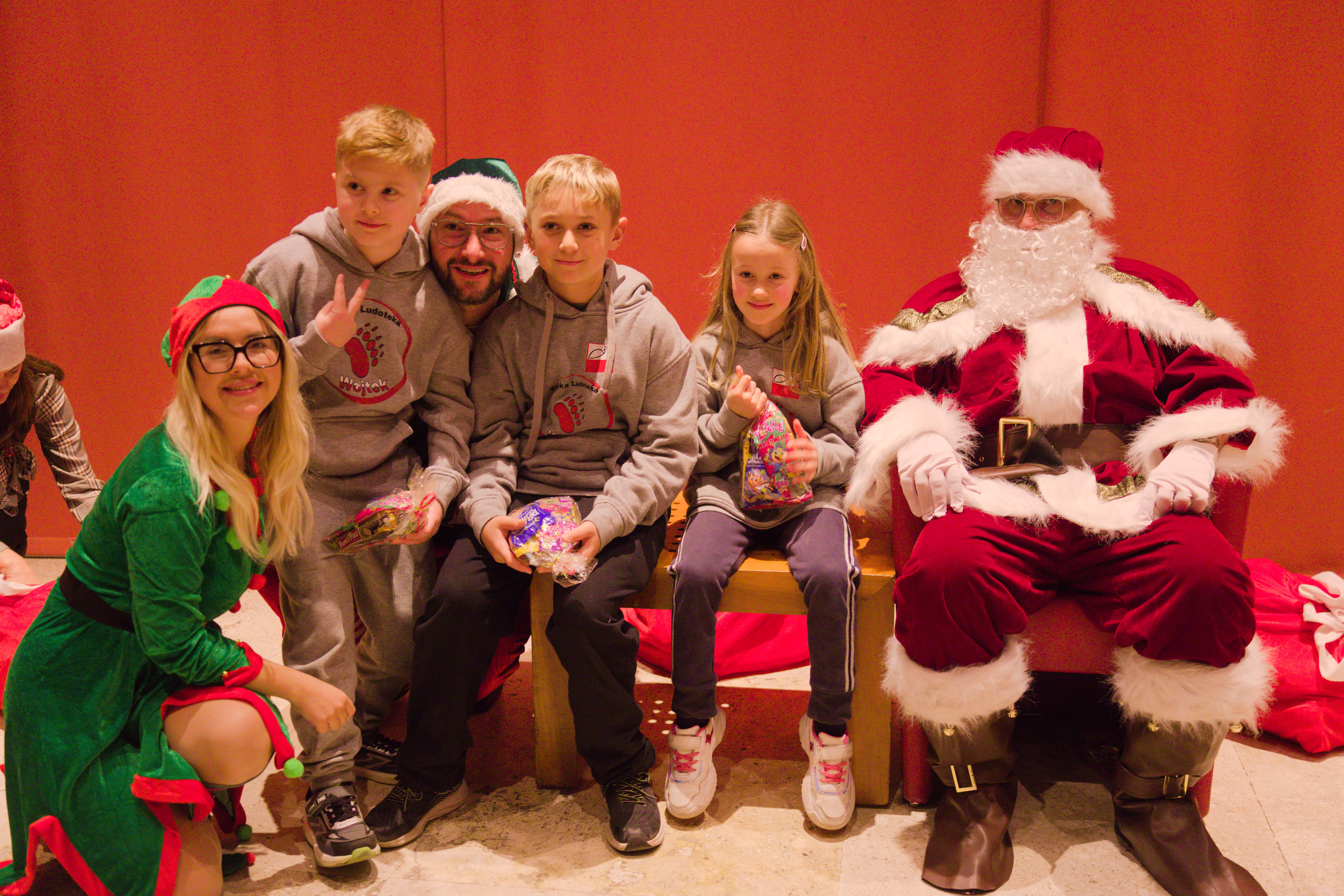 Po występie teatru zebranych poprowadziły elfy na spotkanie ze Świętym Mikołajem, który czekał na dzieci ze świątecznymi upominkami – polskimi słodkościami.
