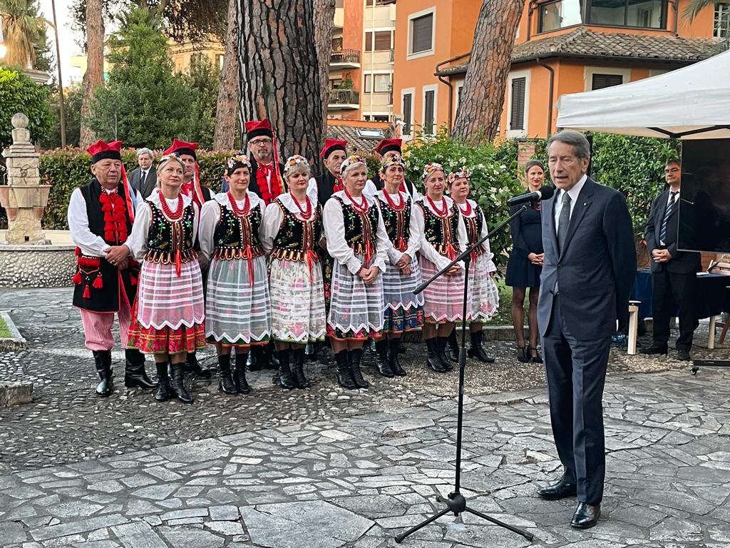 Przyjęcie zaszczycili swoją obecnością Minister Kultury RW Gennaro Sangiuliano oraz przewodniczący Komisji ds. UE Senatu Republiki Włoskiej i były minister spraw zagranicznych Giulio Terzi di Sant'Agata. Parlament włoski reprezentowali także przewodniczący Komisji Spraw Zagranicznych w Izbie Deputowanych i były minister gospodarki i finansów Giulio Tremonti oraz przewodniczący Komisji ds. Kultury, Nauki i Szkolnictwa Federico Mollicone. Ambasada gościła także przebywających w Rzymie przewodniczących parlamentarnych Komisji Spraw Zagranicznych państw Trójkąta Lubelskiego: Radosława Fogla, Žygimantasa Pavilionisa i Oleksandra Mereżko. Wśród gości obecni byli także przedstawiciele włoskich sił zbrojnych, w tym Komisarz Generalny "Onorcaduti" generał dywizji Diego Paulet, jak również przedstawiciele służb porządku i bezpieczeństwa publicznego, w tym Zastępca Dyrektora Generalnego ds. Bezpieczeństwa Publicznego ds. koordynacji i planowania działań policji Prefekt Stefano Gambacurta, a także przedstawiciele włoskiego MSZ, w tym Z-ca Dyrektora DG ds. UE Alessandro Gaudiano..