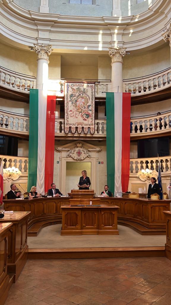 Następnie delegacja przeniosła się do ratusza miejskiego – Sali Tricolore – w celu rozpoczęcia ceremonii wręczenia medali „Pro Bono Poloniae” oraz „ Pro Patria”. Ceremonię poprzedziły okolicznościowe wystąpienia Przewodniczącego Rady Miejskiej Reggio nell’Emilia, Szefa Urzędu do Spraw Kombatantów i Osób Represjonowanych, Ambasadora RP w Mediolanie, zastępcy Prezesa Instytutu Pamięci Narodowej Karola Polejowskiego oraz Konsula Generalnego RP w Mediolanie.