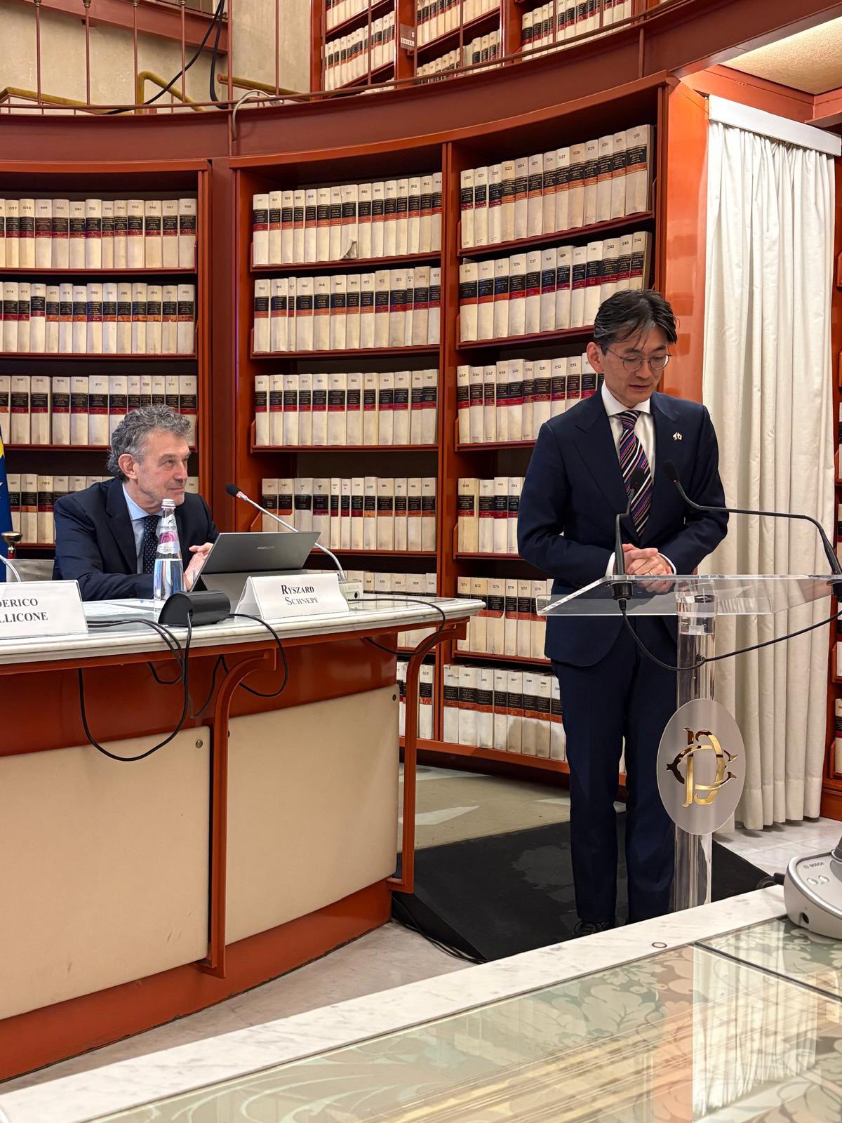 Projekt ten staraniem Ambasady RP w Rzymie stanowi symboliczny most łączący Polskę, Włochy i Japonię, wpisując się w tegoroczne uroczystości upamiętniające 160- lecie nawiązania relacji włosko – japońskich. Wystawę objęło patronatem włoskie Ministerstwo Kultury. Podczas konferencji głos zabrali przewodniczący Komisji ds. Kultury włoskiego parlamentu Federico Mollicone, dyrektor Muzeum Marodowego w Krakowie prof. Andrzej Szczerski, kurator wystawy Beata Romanowicz, a także prezes instytucji kulturalnej - promotora wystawy Arthemisia oraz dyplomaci ambasady polskiej i japońskiej.