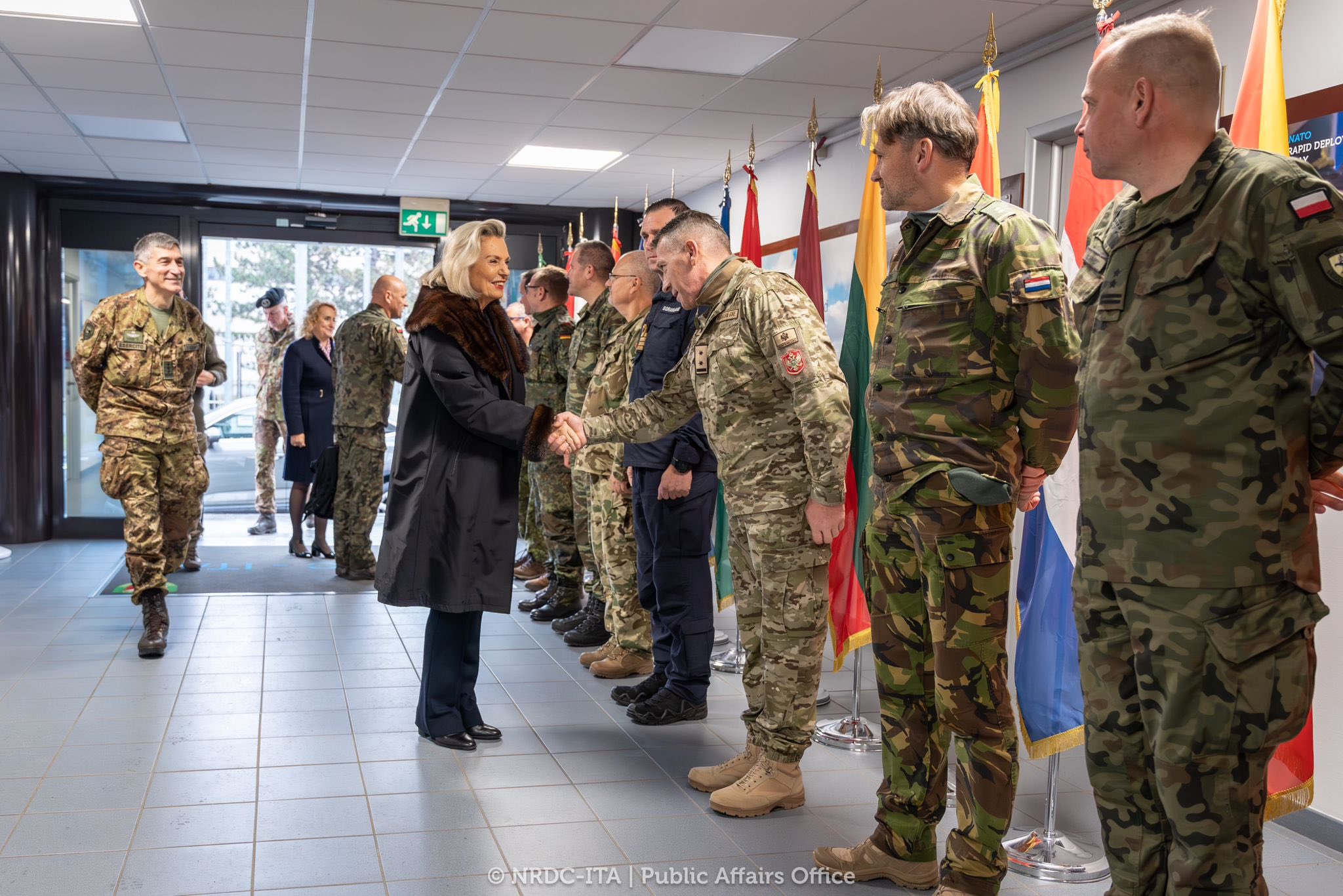 Podczas oficjalnej wizyty w siedzibie korpusu Ambasador spotkała się z przedstawicielami 31 państw wchodzącymi w skład Dowództwa NATO zapoznając się ze strukturą, zakresem zadań i możliwości NRDC-ITA, ze szczególnym uwzględnieniem roli NRDC-ITA jako Kwatery Głównej (HQ) Sojuszniczych Sił Reagowania (ARF). Ambasador miała ponadto wystąpienie, wygłoszone przed oficerami ścisłego dowództwa oraz starszymi narodowymi oficerami państw kontrybuujących w strukturze korpusu. Na zakończenie pobytu uczestniczyła w obchodach świąt narodowych Albanii i Rumunii.