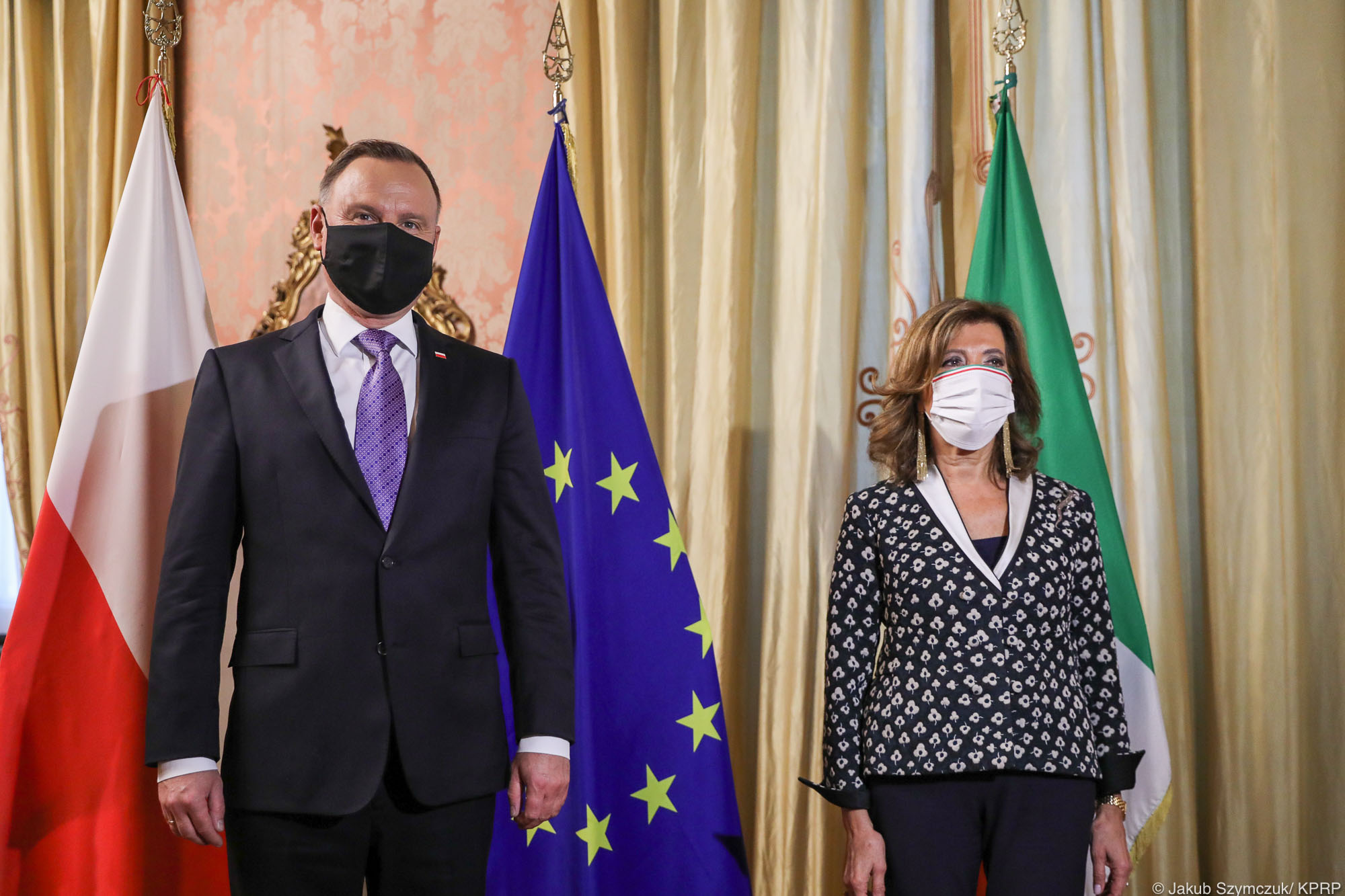 Prezydent Andrzej Duda odbył w dniach 23-25 września wizytę we Włoszech. Była to pierwsza w nowej kadencji wizyta zagraniczna. - Wybierając Rzym na cel pierwszego zagranicznego spotkania poza granicami kraju, Prezydent chce podkreślić solidarność Polski i Polaków z narodem włoskim, tak mocno doświadczonym przez pandemie koronawirusa – powiedział Szef Gabinetu Prezydenta RP Krzysztof Szczerski.