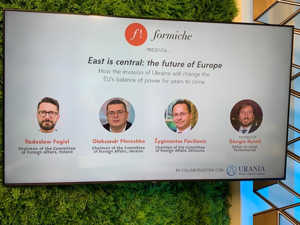 Przewodniczący wziął także udział w roboczym lunchu z włoskimi parlamentarzystami oraz w połączonym spotkaniu komisji ds. zagranicznych Izby Deputowanych i Senatu. Udzielił również wywiadu opiniotwórczemu portalowi Formiche w ramach dyskusji „East is central: The future of Europe”: https://formiche.net/2023/05/east-is-central-merezhko-fogiel-e-pavilionis/ .