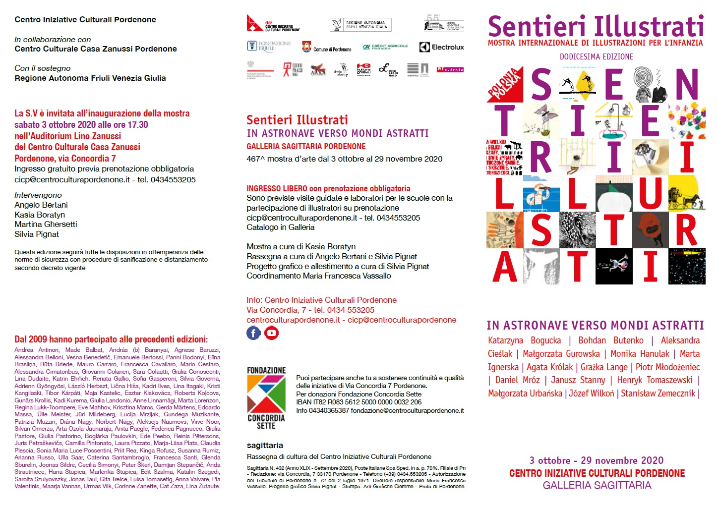 Wystawa „In astronave verso mondi astratti” organizowana jest w ramach międzynarodowego festiwalu ilustracji książki dziecięcej "Sentieri Illustrati" na zlecenie Centro Iniziative Culturali w Galleria Saggitaria w Pordenone w dniach 3 października - 29 listopada